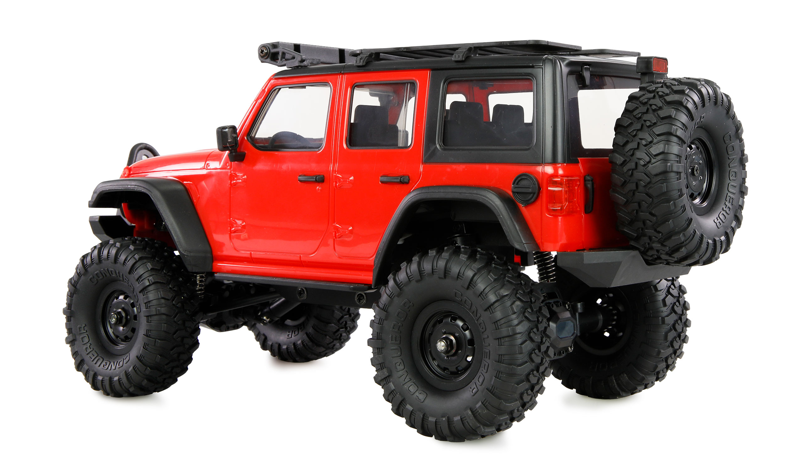Das Modell verfügt über eine hochwertige Karosserie im Crosstrail-Design, die in rot gehalten ist. Mit seiner kompakten Größe eignet sich der Mini-Crawler sowohl für Indoor-Parcours als auch für Outdoor-Abenteuer. Die präzise Federung und die griffigen Reifen sorgen für realistische Fahreigenschaften und ein authentisches Offroad-Erlebnis.