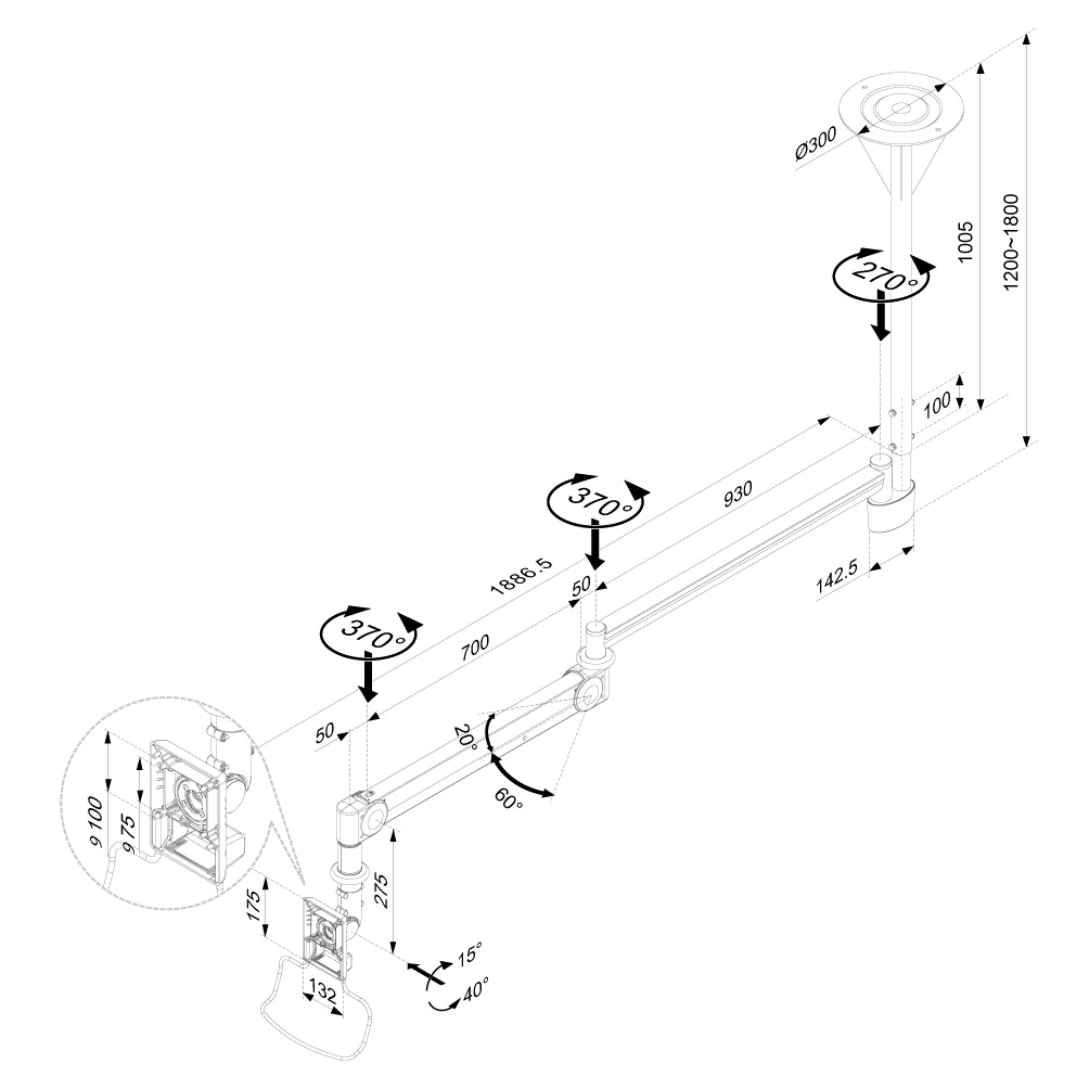 Neomounts by Newstar FPMA-HAC100HC hat vier Drehpunkte und eignet sich für Bildschirme bis 32" (81 cm). Die maximale Tragfähigkeit dieses Produkts ist für ein 12 kg Bildschirm. Die Deckenhalterung ist geeignet für Bildschirme mit VESA 75 x 75 oder 100 x 100mm Lochmuster. Verschiedene andere Lochmuster können, unter Verwendung von Neomounts by Newstars VESA Adapterplatten, abgedeckt werden.