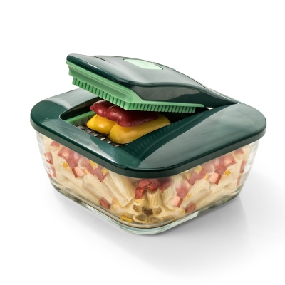 Das Genius Nicer Dicer Chef Set 9-tlg. in grün bietet eine praktische Lösung für schnelles, präzises und vielseitiges Schneiden in der Küche. Mit einem großzügigen 3.300 ml Auffangbehälter und einem Frischhaltedeckel eignet sich das Set ideal für die Zubereitung und Aufbewahrung größerer Mengen. Die optimierte Hebelwirkung im Schneid-Oberteil sorgt für müheloses Arbeiten mit minimalem Kraftaufwand.