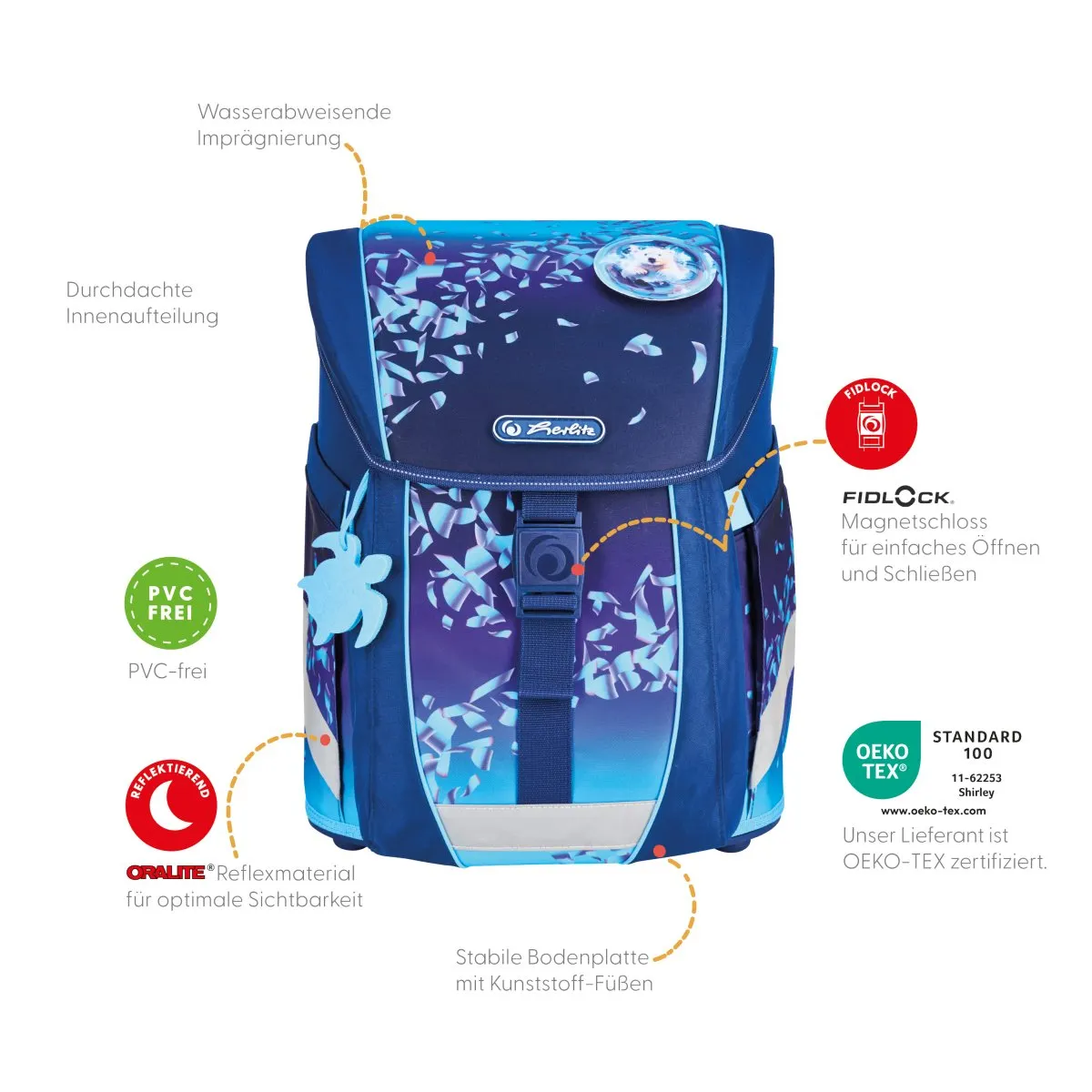 Der Herlitz Schulranzen FiloActive Plus Blue Ice überzeugt durch sein stylisches, eisblaues Design und seine ergonomische