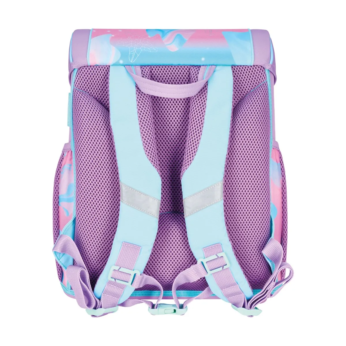 Dank des einfachen Klick-Verschlusses lässt sich der Schulranzen mühelos öffnen und schließen. Reflektierende Elemente an der Vorderseite, den Seiten und den Schultergurten sorgen für bessere Sichtbarkeit im Straßenverkehr.