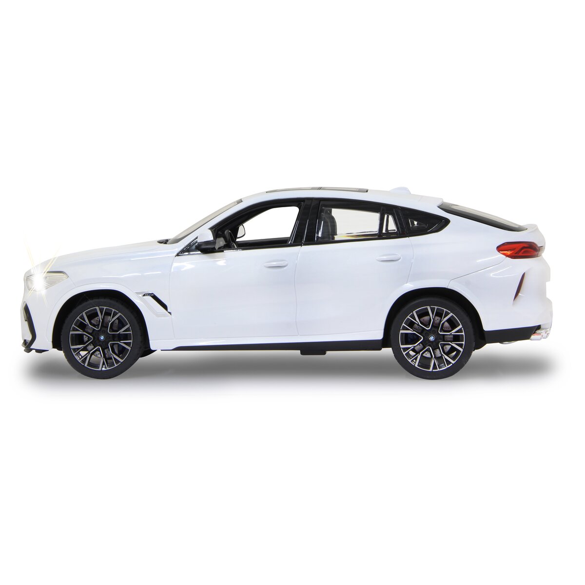 Der BMW X6 ist ein seit 2008 produziertes Sport Utility Vehicle des Automobilherstellers BMW. 2014 kam die zweite Generation des Fahrzeugs auf den Markt. 2019 wurde die dritte Generation vorgestellt. Der BMW G06 ist ein Crossover aus SUV und Coupé. F96 ist die interne Bezeichnung für den X6 M. Marktstart des x6 M F 96 war im April 2020 und ist seither auf den Straßen unterwegs. Der Traum so einen Wagen selber zu fahren kann jetzt wahr werden. Mit diesem offiziell lizensierten Deluxe Car Modell 1:14 von JAMARA können Sie sich das Gefühl so ein deutsches Markenautomobil zu besitzen ins heimische Wohnzimmer holen. Mit LED Licht vorn und hinten, einem detailgetreuen Innenraum und perfekt nachgebildeten originalen Details an Chassis und Karosserie, die mit viel Liebe umgesetzt wurden, überzeugt das Fahrzeug auch durch die hochwertige Verarbeitung. Mit der ergonomischen 2,4 GHz Fernsteuerung halten Sie die Schaltzentrale in der Hand und erreichen Geschwindigkeiten bis zu 11 Km/h. Leicht zu erlernende Kommandos lassen das Modell genau das tun was Sie vorgeben. Also, ab zur Stadtrunde auf dem Parkett im Kinderzimmer und dem Spielspaß steht nichts mehr im Wege.