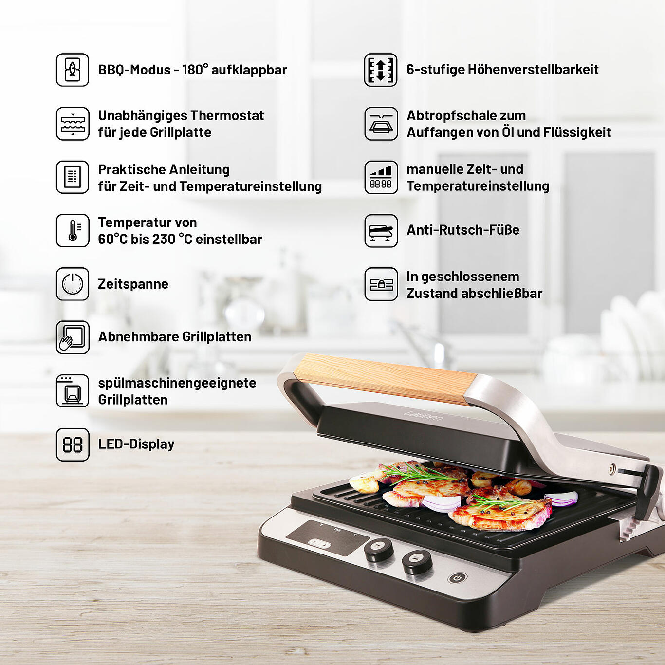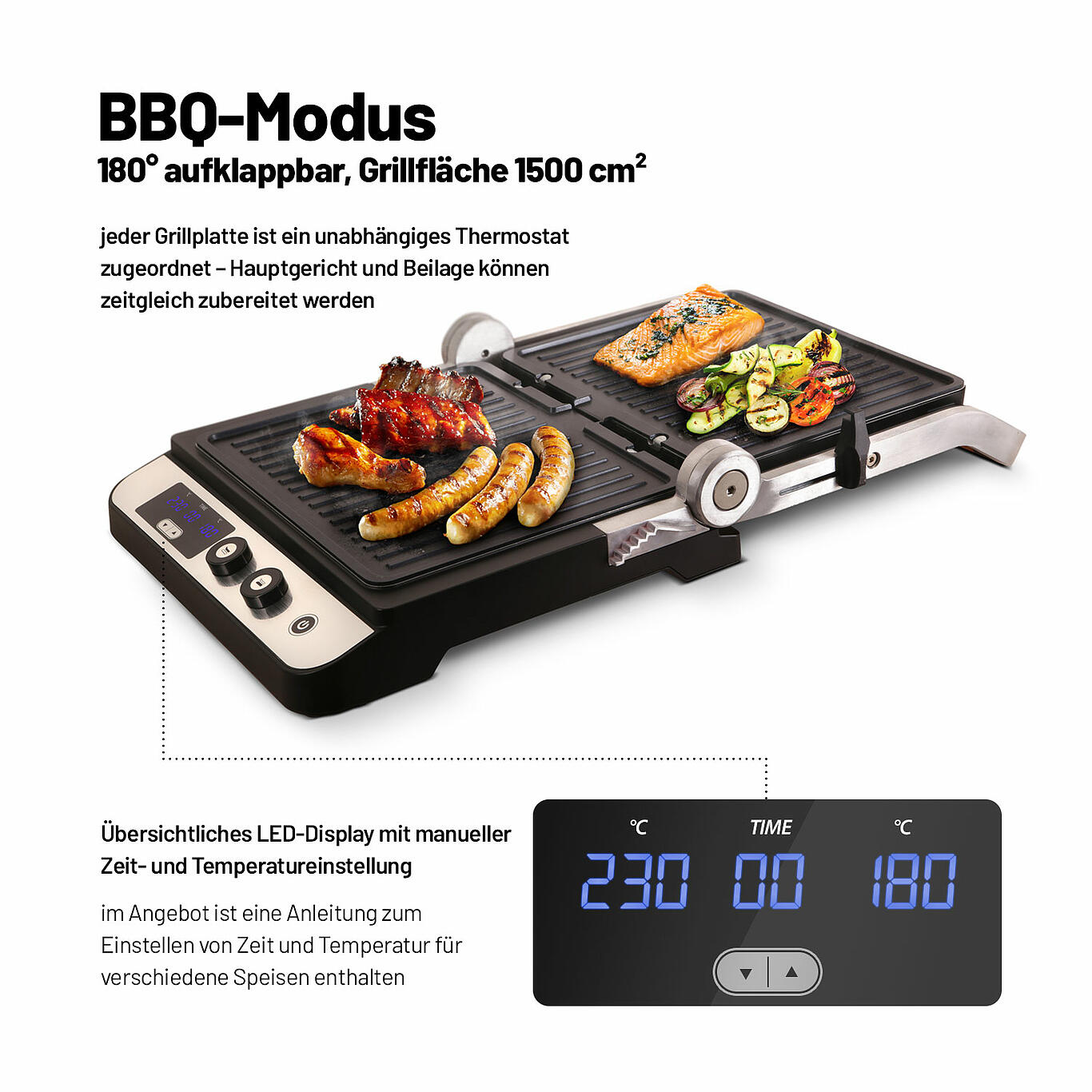 • Flexible Grillplatten: Unabhängig einstellbare Temperaturen (60-230 °C) für jeden Platte, ideal für unterschiedliche Speisen.