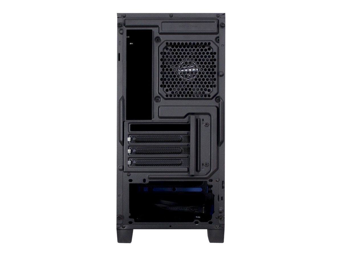 Seine kompakte Bauform im Micro-ATX Standard bietet, dank des Verzichtes auf externe Laufwerksschächte, ausreichend Platz und kann so auch Grafikkarten mit bis zu einer Länge von 32 cm aufnehmen.