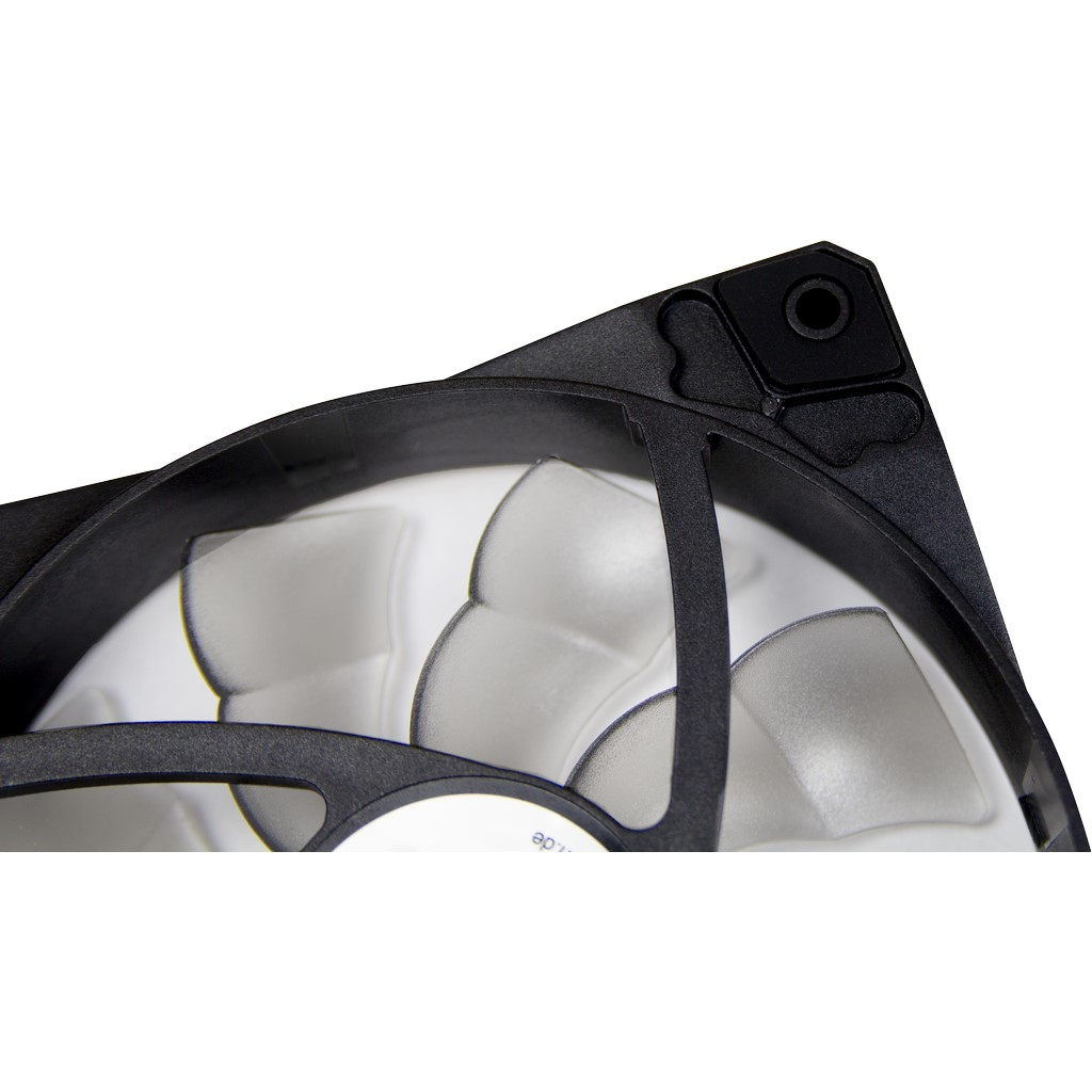 Gummierte Auflagen in den Lüfterecken, auf beiden Seiten des Lüfters, sorgen für einen vibrationsfreien Betrieb und lassen die Option offen, ob der Lüfter kühle Luft ansaugen oder warme Luft aus dem Gehäuse pusten soll.