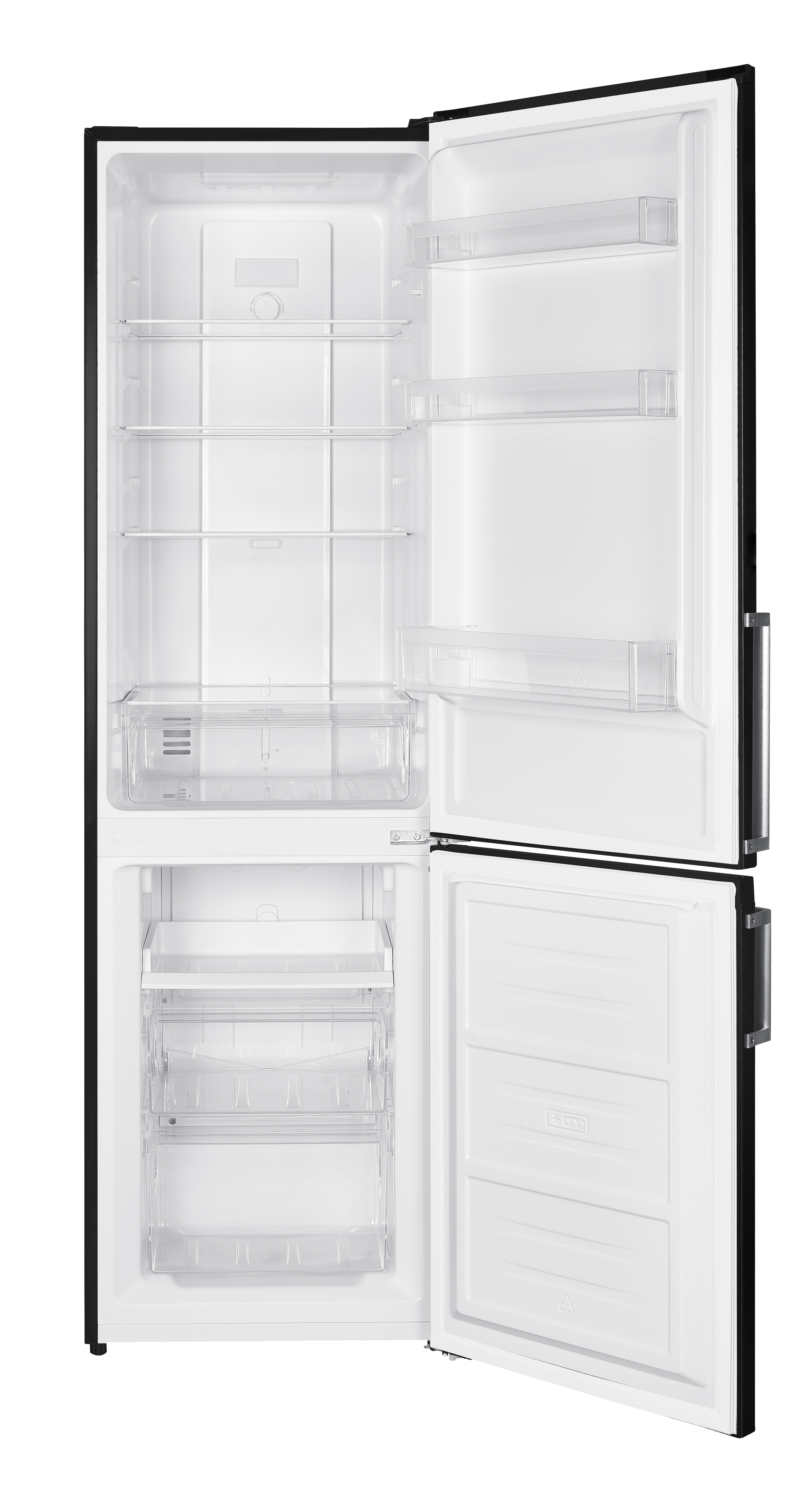Das digitale Steuerungssystem mit LED-Display sorgt für eine präzise Temperaturregelung, während die verstellbaren Ablagen und Türfächer für flexible Aufbewahrungsmöglichkeiten sorgen.
