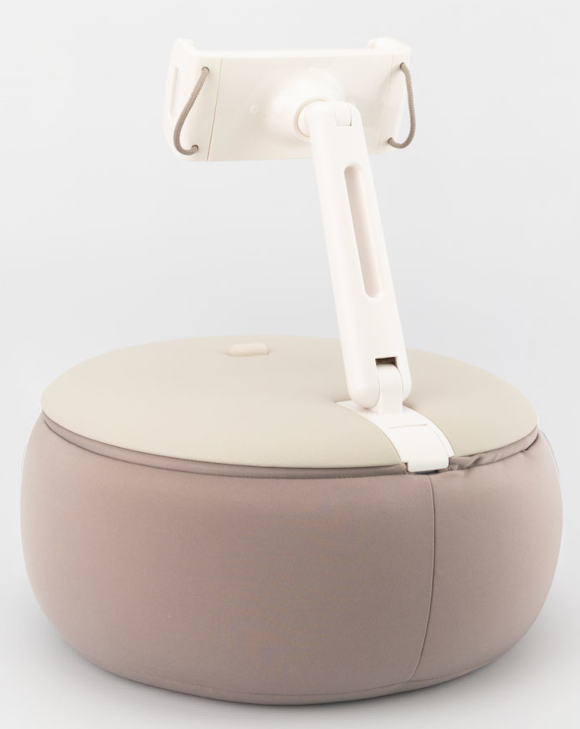 Die Halterung ist direkt in den oberen Bereich des Kissens integriert und lässt sich bei Bedarf ausklappen, wodurch das Gerät flexibel in eine angenehme Sichtposition gebracht werden kann. Die stabile Klemme fixiert Smartphones und kleinere Tablets sicher, wodurch ein sicherer Halt während der Nutzung gewährleistet wird.