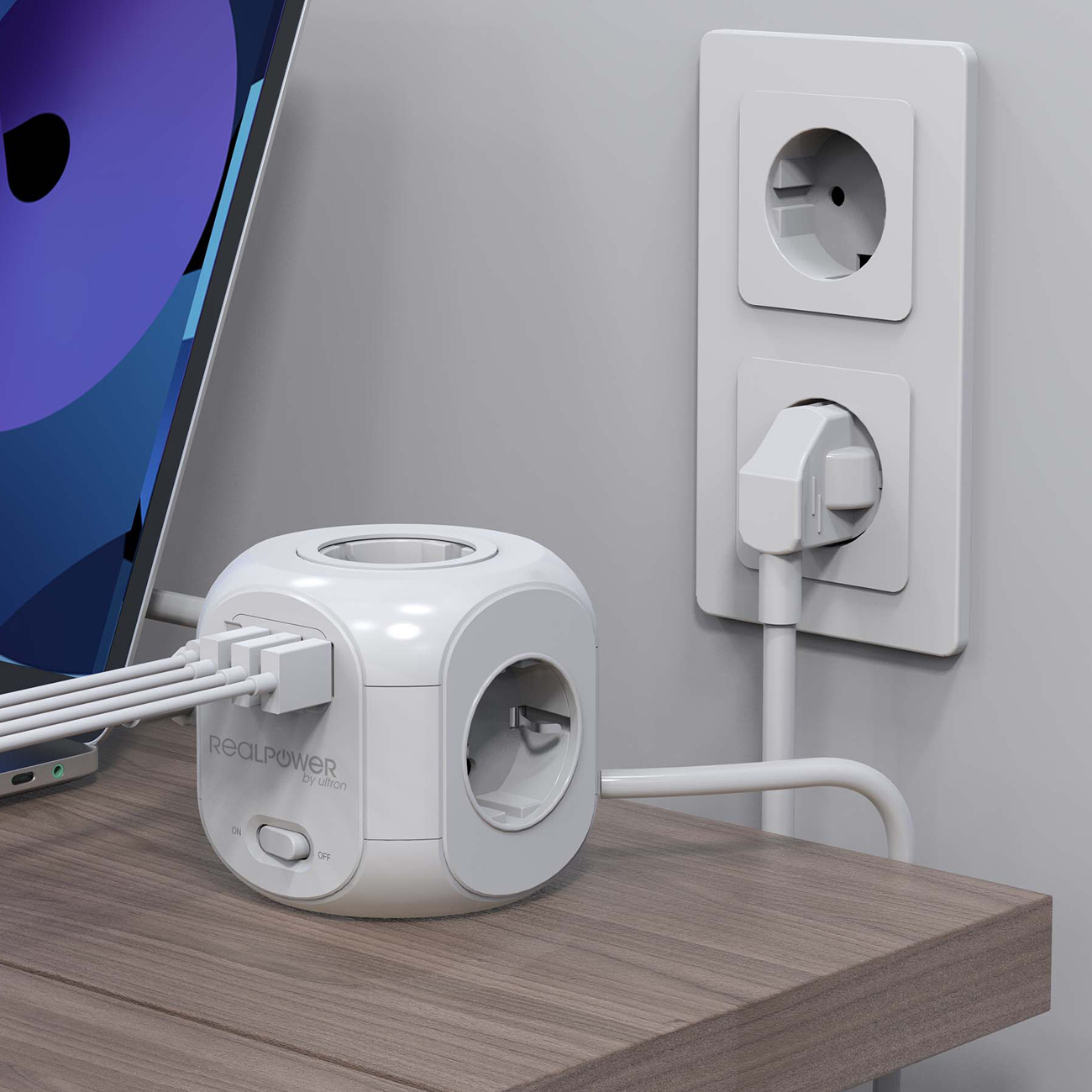 Der Steckdosenwürfel RealPower Powerbox 431 holt aus einer