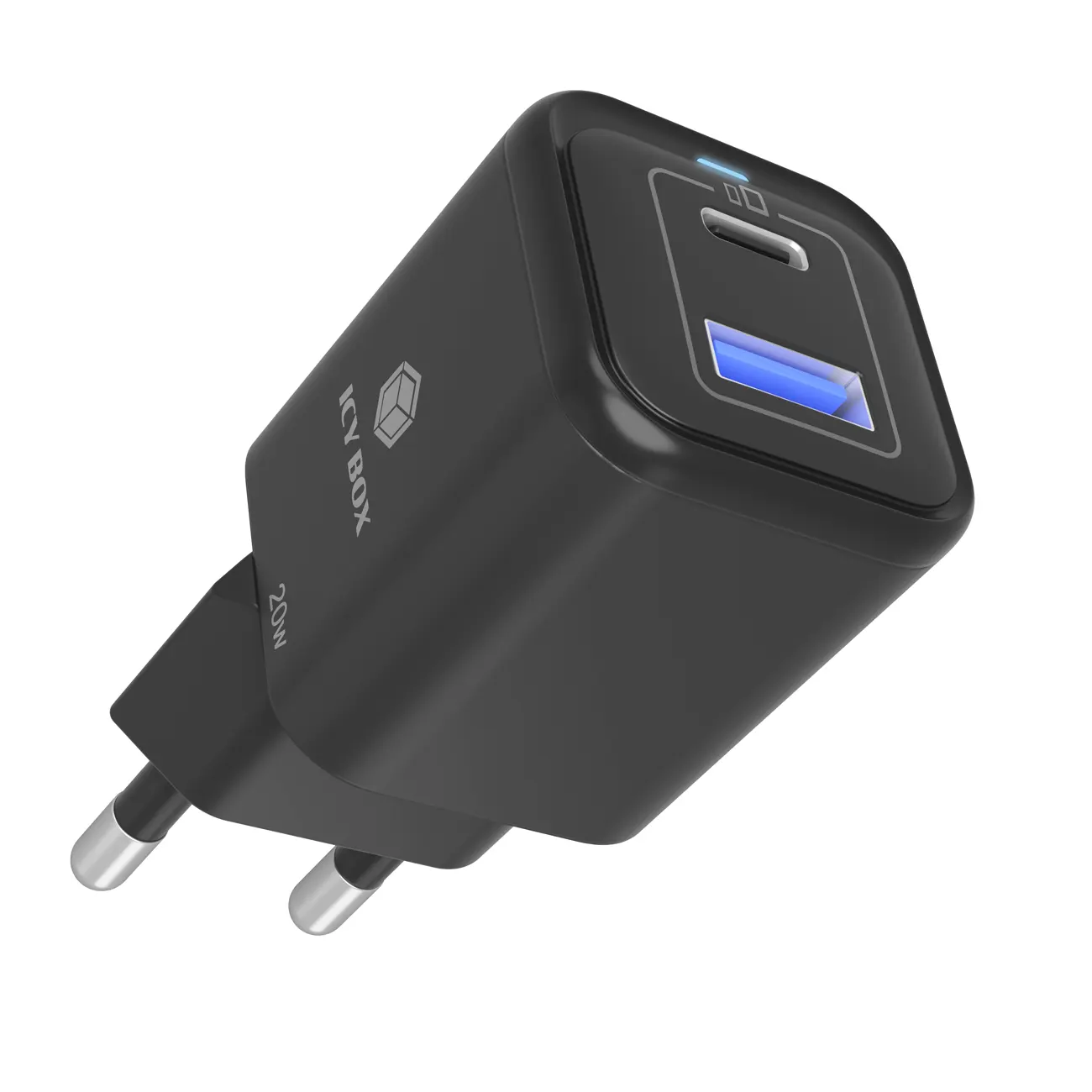 Schnellladegerät 2-Port IcyBox USB 20W für Mobilgeräte