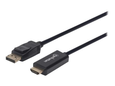 Manhattan DisplayPort 1.2 to HDMI Cable, 4K@60Hz, 1m, Male to Male, DP With Latch, Black, Not Bi-Directional, Three Year Warranty, Polybag - Video- / Audiokabel - DisplayPort (M)