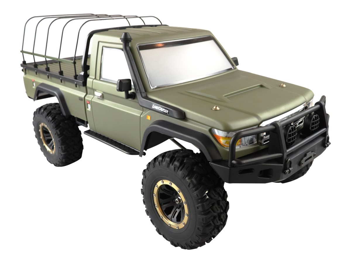 Dank des leistungsstarken Allradantriebs (4WD), eines durchdachten Chassis-Designs und einer realistischen Scale-Karosserie mit militärischem Charakter meistert dieser Crawler selbst schwierigstes Gelände souverän. Die große Bodenfreiheit, griffige Offroad-Reifen und ölgedämpfte Stoßdämpfer sorgen für extreme Geländegängigkeit. Ideal für erfahrene Fahrer, die Größe, Power und ein authentisches Offroad-Erlebnis suchen.