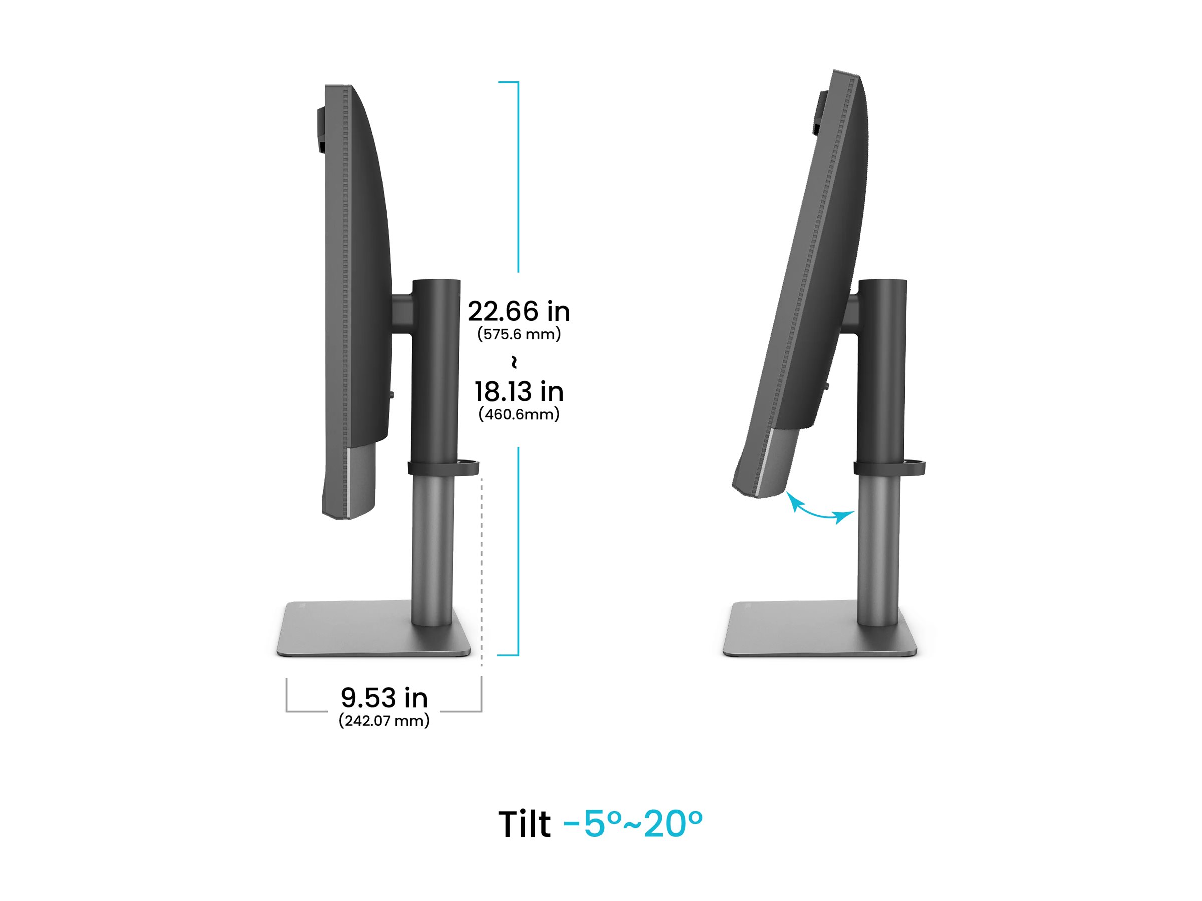 Mit Standfuß (Querformat, niedrigste Position) - Breite: 61.4 cm - Tiefe: 24.207 cm - Höhe: 46.06 cm - Gewicht: 8.8 kg