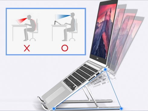 Die höhenverstellbare und faltbare Bauweise ermöglicht eine individuelle Anpassung des Blickwinkels, wodurch Nacken und Rücken bei längerer Nutzung entlastet werden. Gleichzeitig sorgt die robuste Konstruktion für eine hohe Tragfähigkeit, wodurch auch größere Notebooks sicher genutzt werden können.