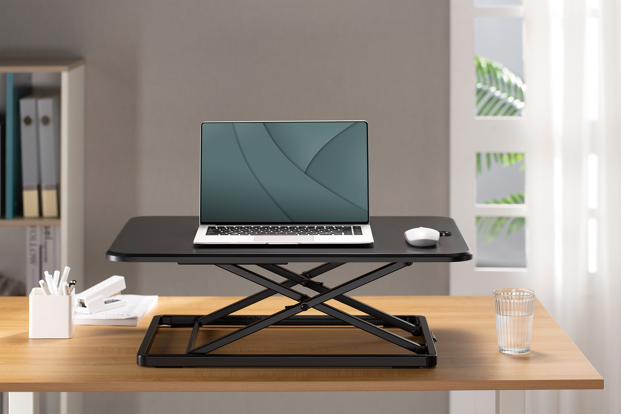 Funktion: höhenverstellbarer Schreibtischaufsatz für Sitz-Steh-Arbeitsplätze