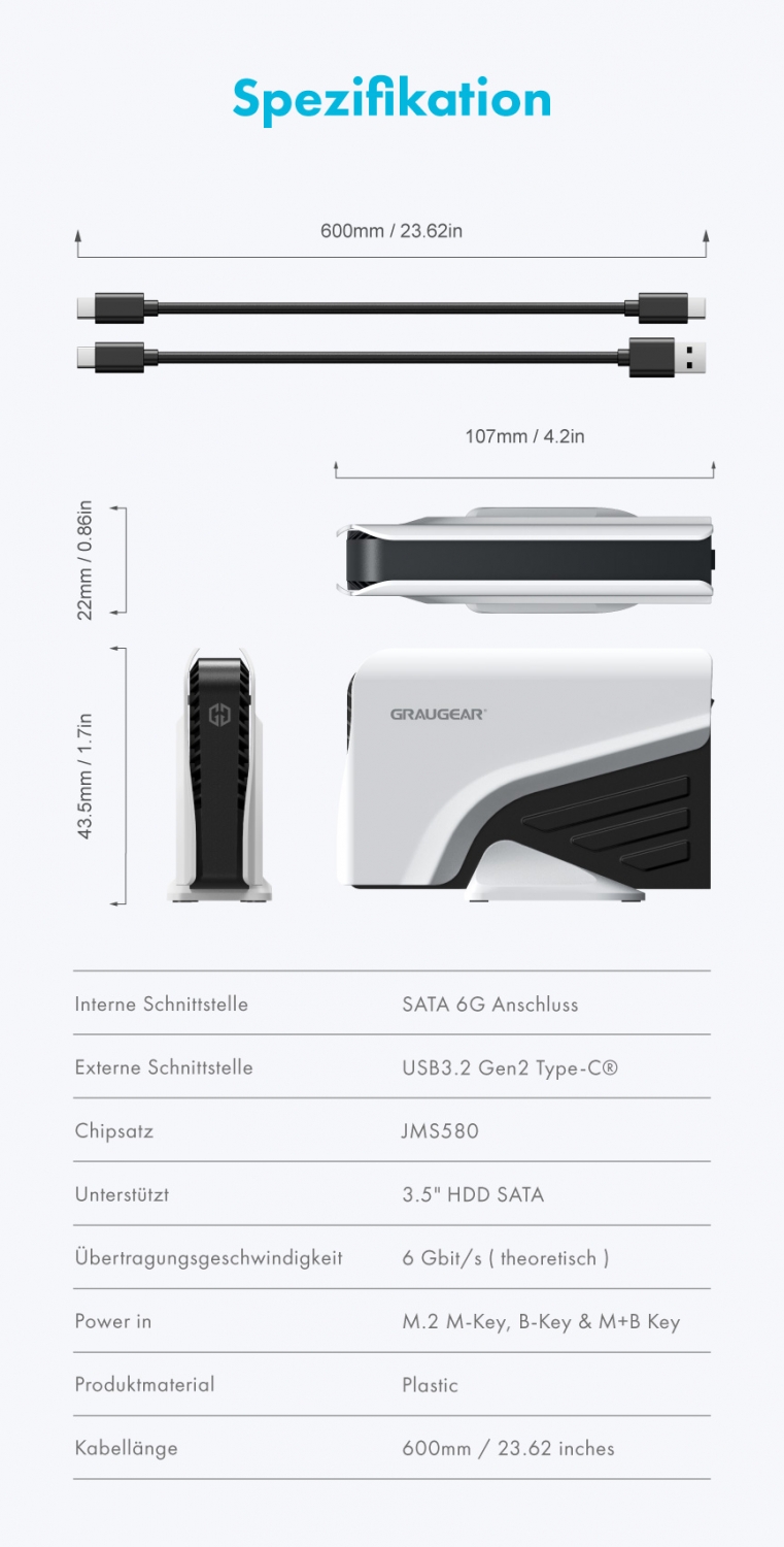 GRAUGEAR externe Festplatte 4TB für PS4/PS5 USB-C/USB-A