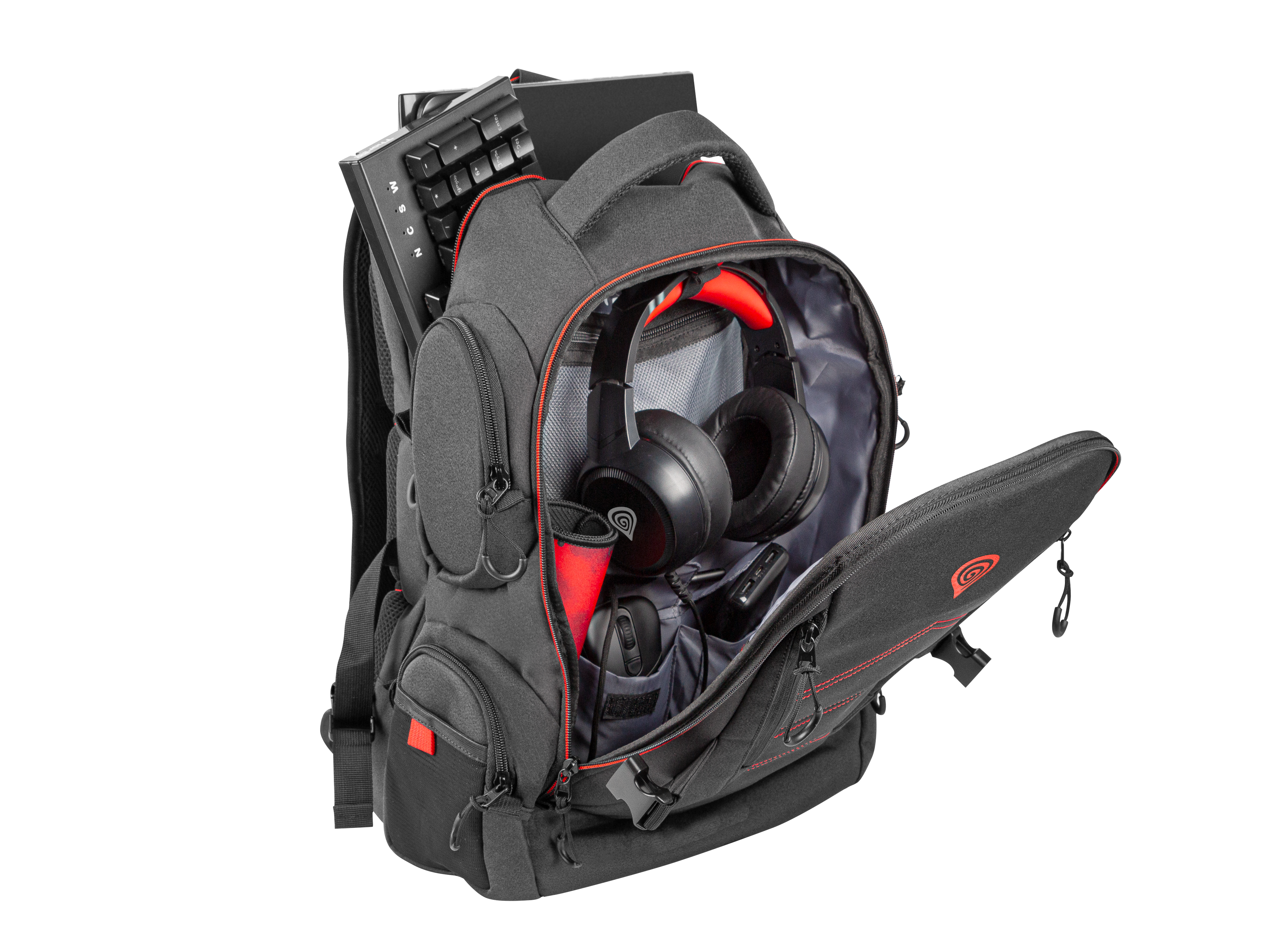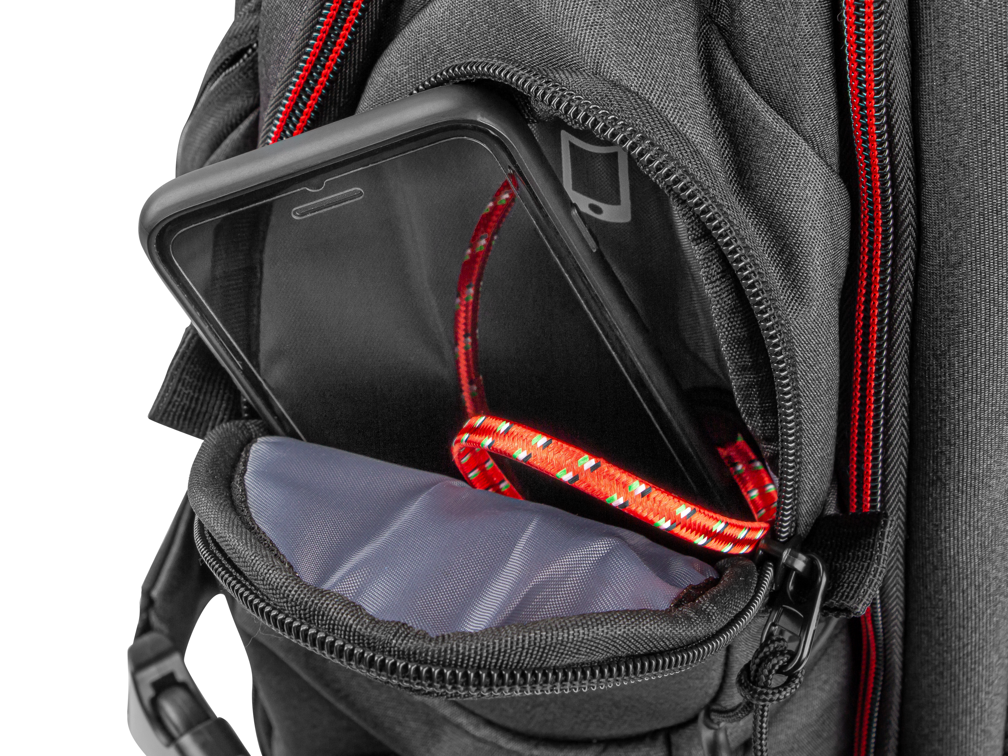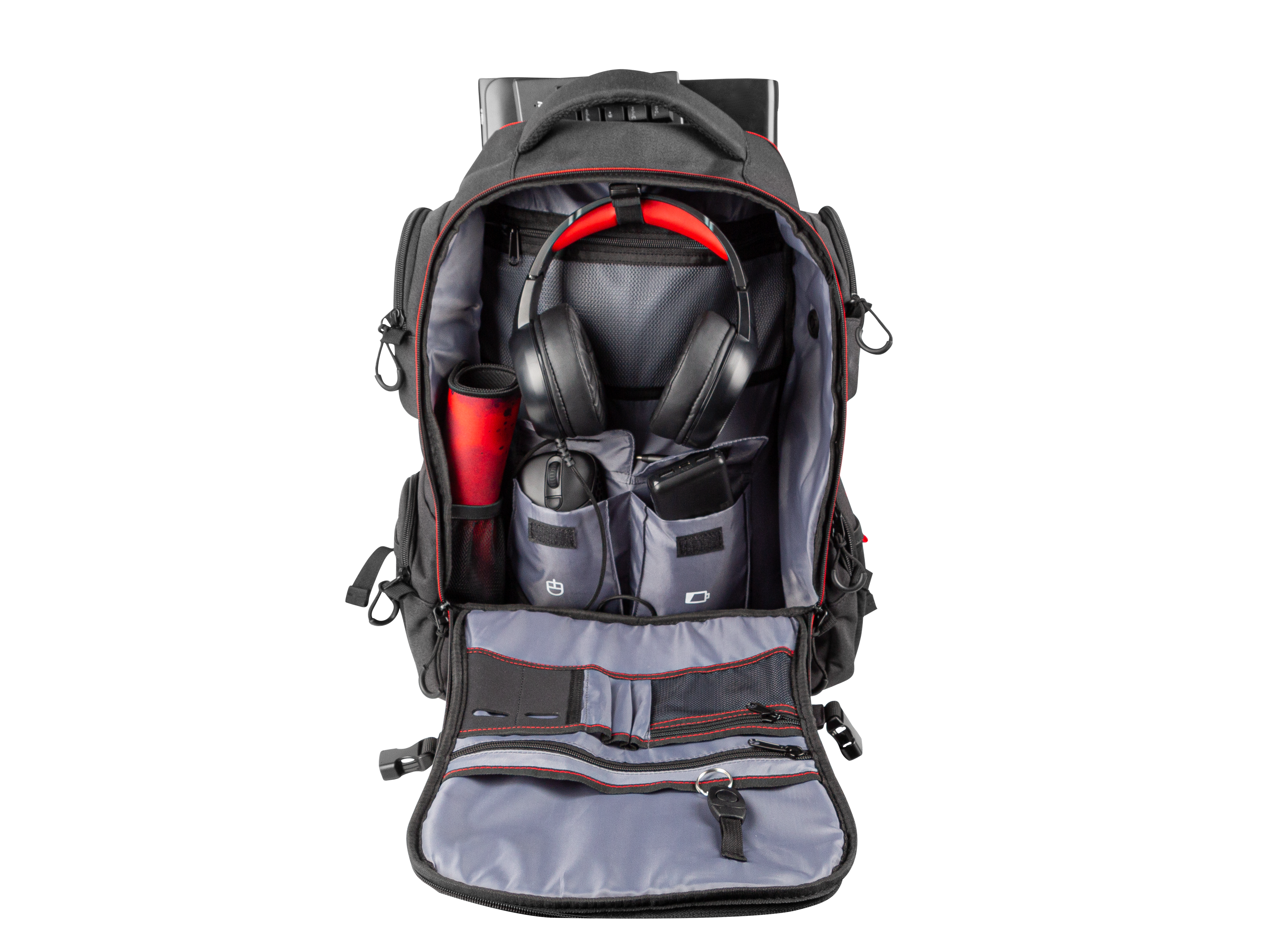 - Geräumiges Hauptfach mit mehreren leicht zugänglichen Taschen für Headset,