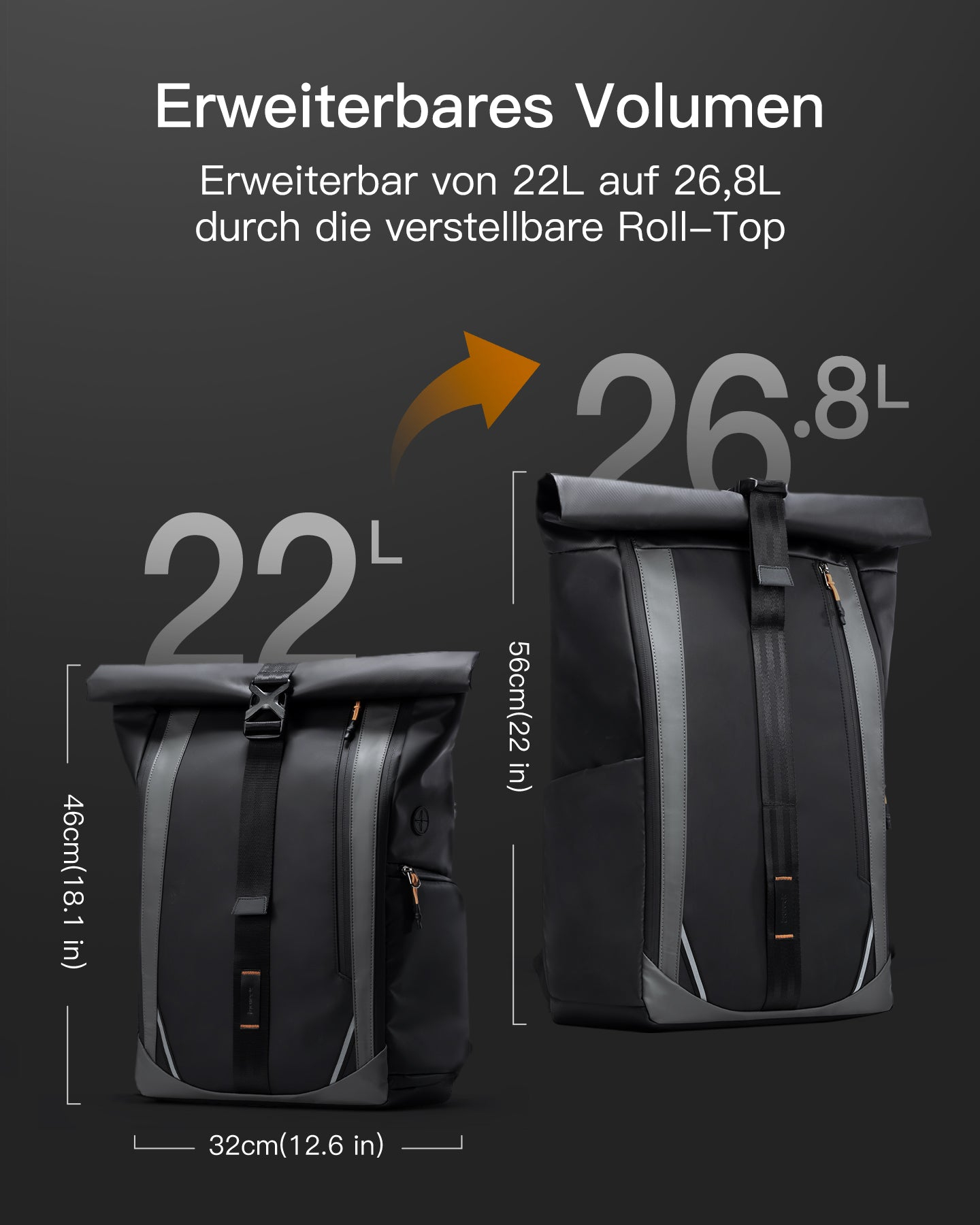 Die Erweiterungsfunktion erlaubt eine Vergrößerung des Stauraums von ca. 22 auf bis zu 26,8 Liter, wodurch der Rucksack besonders vielseitig einsetzbar ist. Gepolsterte Schultergurte und ein atmungsaktives Rückenpolster sorgen für hohen Tragekomfort, wodurch der Rucksack auch bei längerer Nutzung angenehm bleibt.
