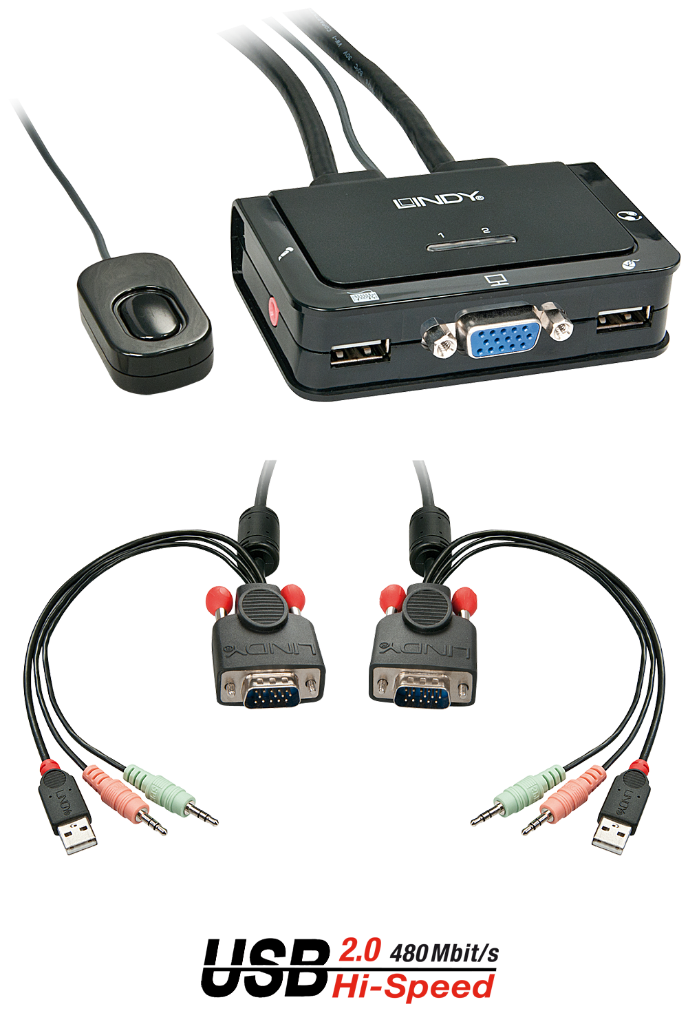 Lindy VGA KVM Switch Compact USB 2.0 Audio 2 Port