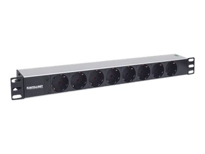Intellinet 19" 8-fach Steckdosenleiste, Schutzkontakt, Power-LED, ohne Überspannungsschutz, 1,8 m Stromkabel, 1 HE - Steckdosenleiste (Rack - einbaufähig)
