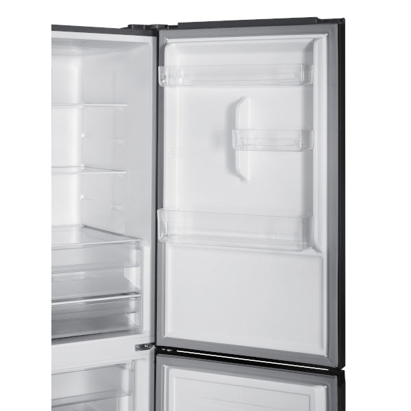 Das No-Frost-System verhindert Eisbildung im Kühl- und Gefrierteil, während Funktionen wie Schnellgefrieren, Energiesparmodus und elektronische Temperaturregelung für Komfort und Effizienz sorgen. Die LED-Beleuchtung, höhenverstellbare Füße und der Türalarm runden die Ausstattung ab.