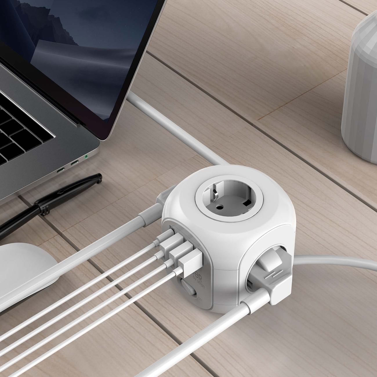 Besonderheiten: Überspannungsschutz, USB + USB-C Ladeports, kompakte Würfelform