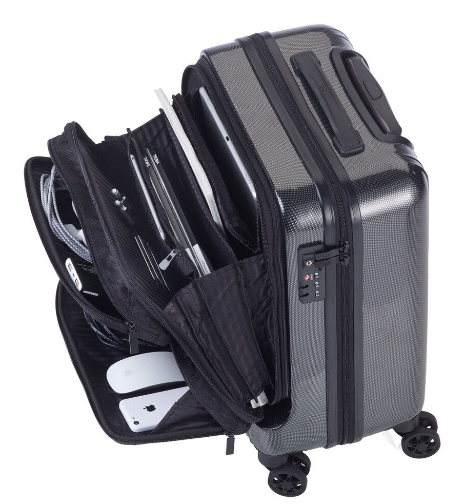 Gefertigt aus strapazierfähigen Materialien überzeugt der Trolley durch eine robuste Verarbeitung und ein professionelles, modernes Design. Mehrere Fächer und Organisationsbereiche sorgen dafür, dass Technik, Dokumente und persönliche Gegenstände übersichtlich verstaut werden können und jederzeit griffbereit sind.