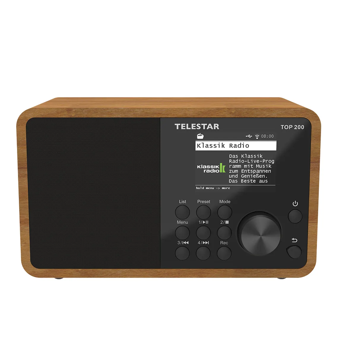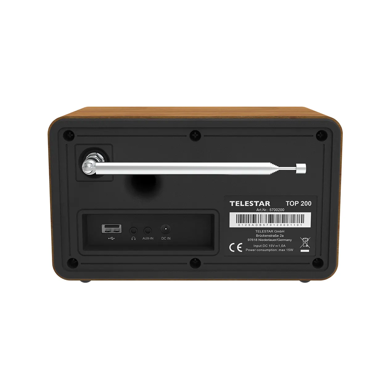 Das TELESTAR TOP 200 Holz ist ein vielseitiges Multifunktionsradio im eleganten Holzgehäuse mit Empfang für DAB+, UKW und Internetradio. Es bietet moderne Konnektivität über