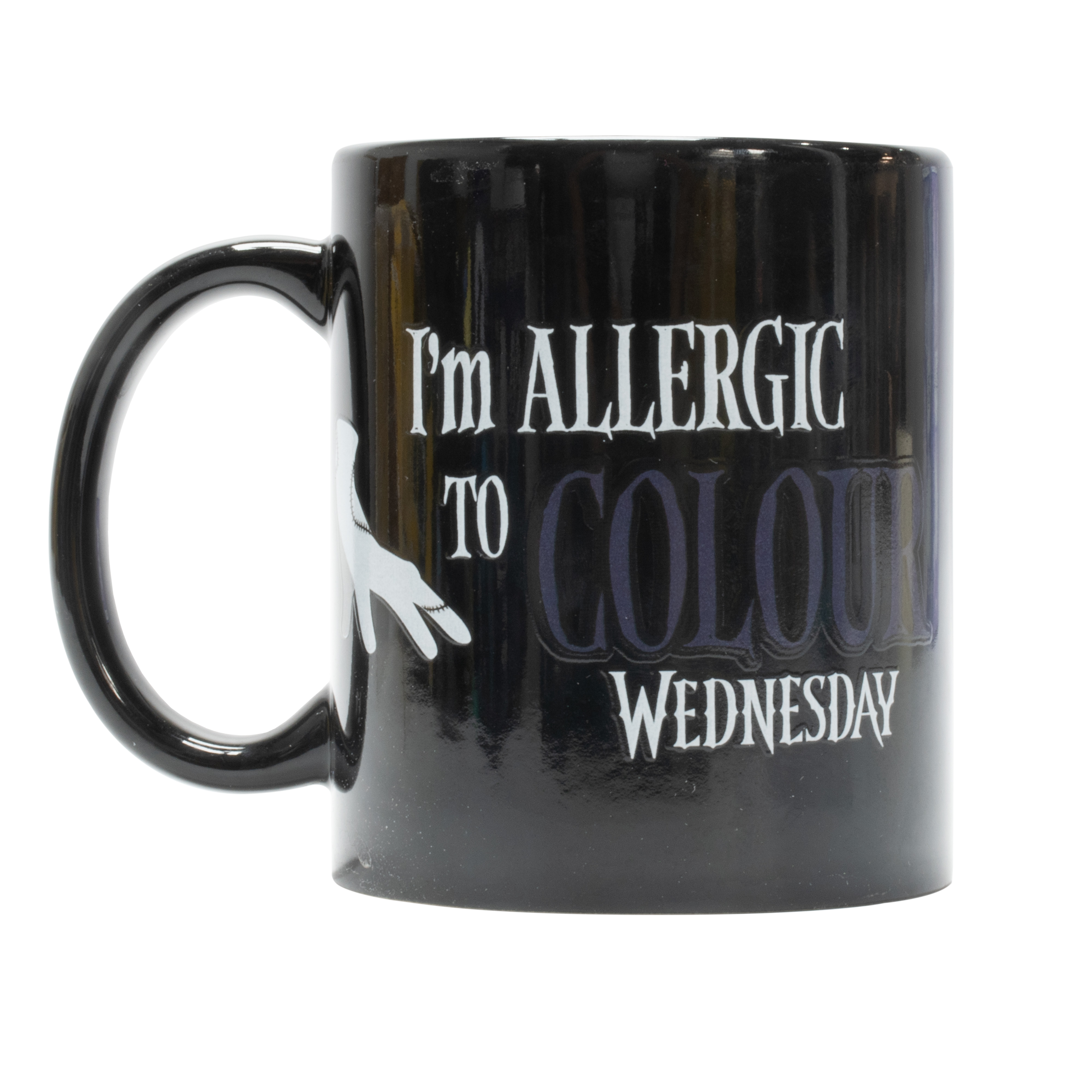 Die Wednesday – Tasse „Ophelia Window“ ist ein offiziell lizenziertes Fanprodukt im einzigartigen Addams-Family-Stil. Das besondere Highlight: Die Tasse verfügt über einen Farbwechseleffekt, der beim Eingießen heißer Getränke das