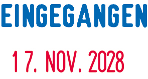 Besonderheiten: fester Text „EINGEGANGEN“, Datumsfunktion, zweifarbiger Abdruck, selbstfärbend, austauschbares Kissen
