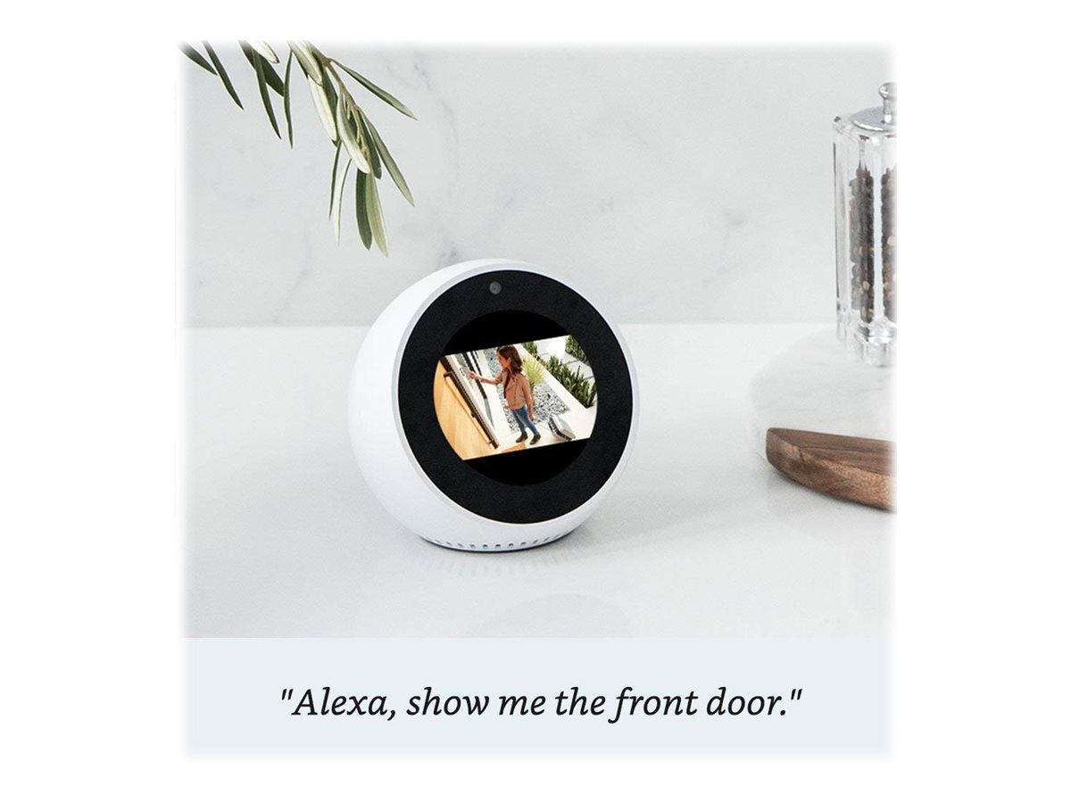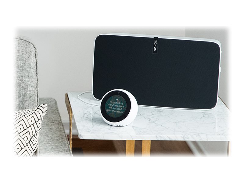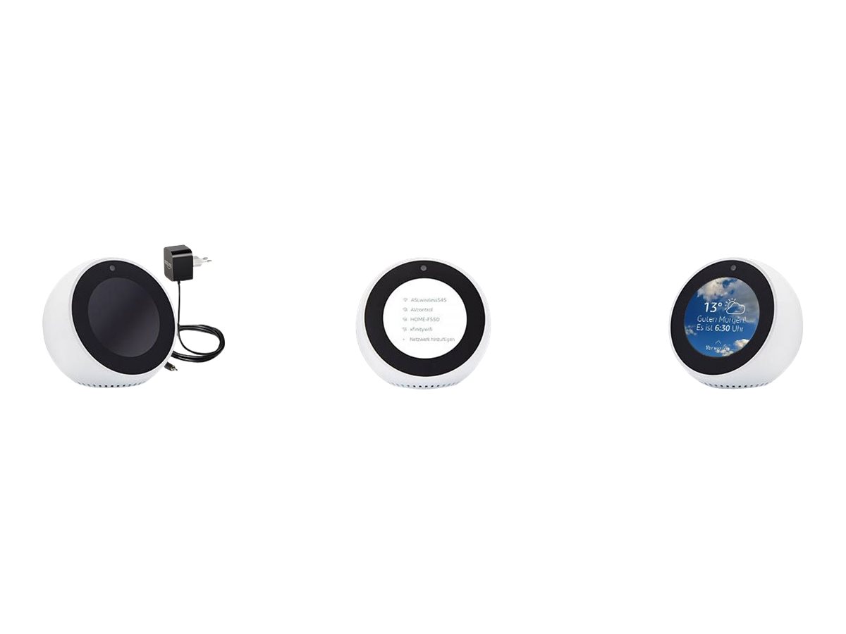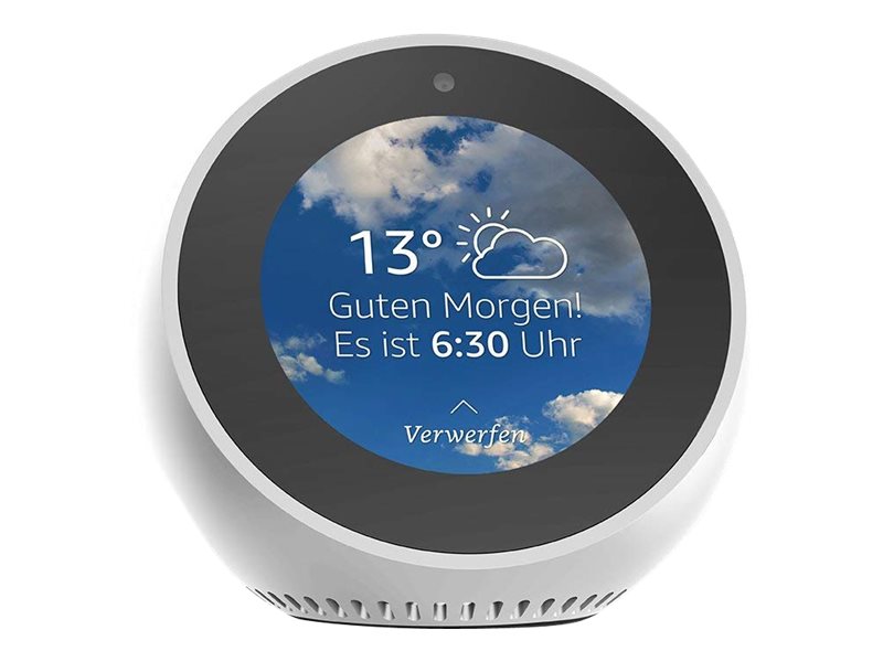 Der Amazon Echo Spot in Weiß ist ein kompakter mit integriertem , ideal als smarter Wecker, Musikplayer oder Steuerzentrale für dein Zuhause.