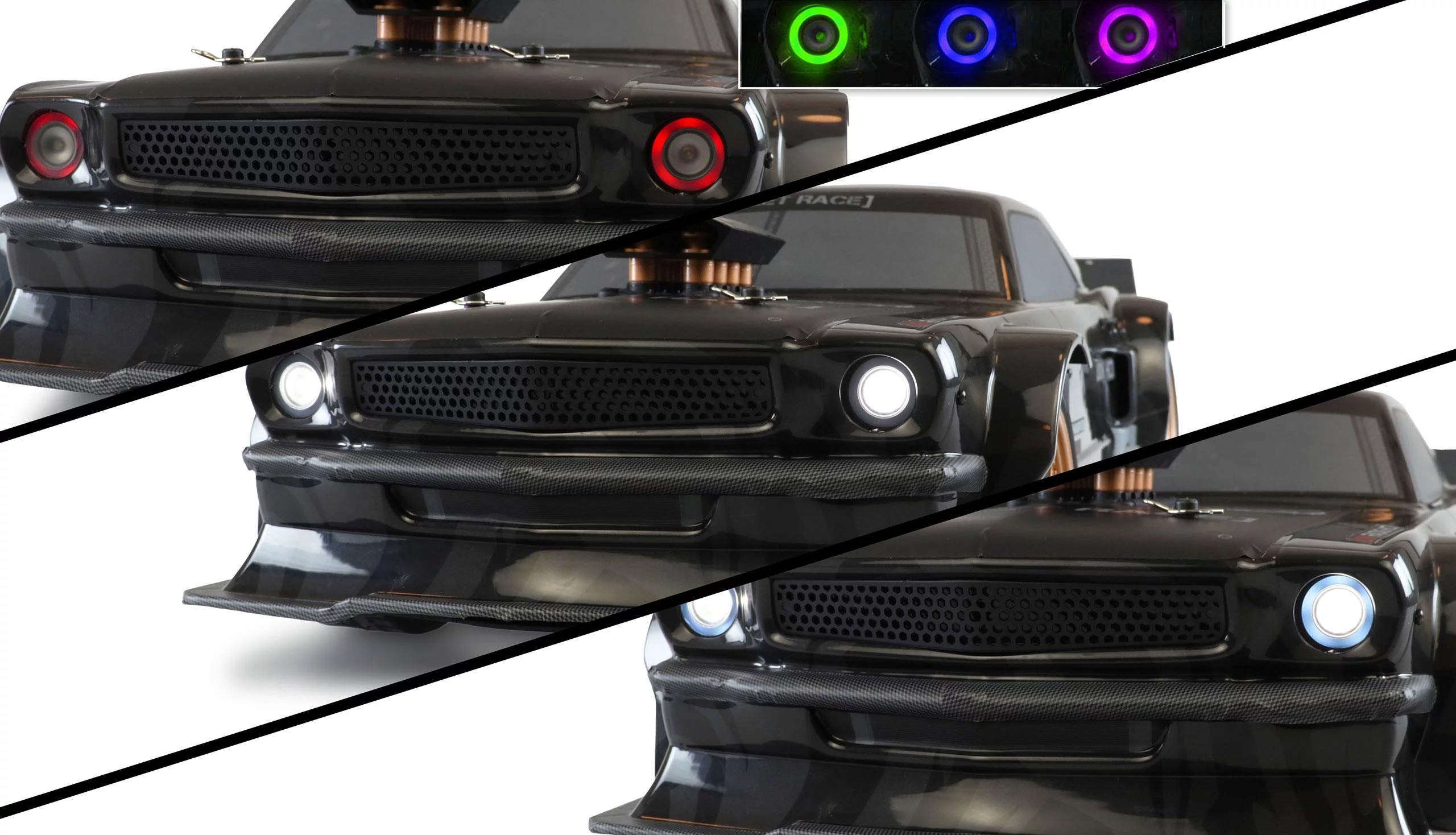 Die wunderschöne Karosserie des Driftcars ist optisch ein absolutes Sahnestück, welches dem Modell eine sehr schöne und sportliche Optik verleiht. Der HC7 ist zudem mit einer LED-Beleuchtungsanlage ausgestattet welche über den Sender nicht nur Ein- und ausgeschaltet werden kann, sondern auch verschiedene Leuchtmodi zulässt. (verschiedene Frontbeleuchtungsmodi mit Angel Eyes in unterschiedlichen Farben)