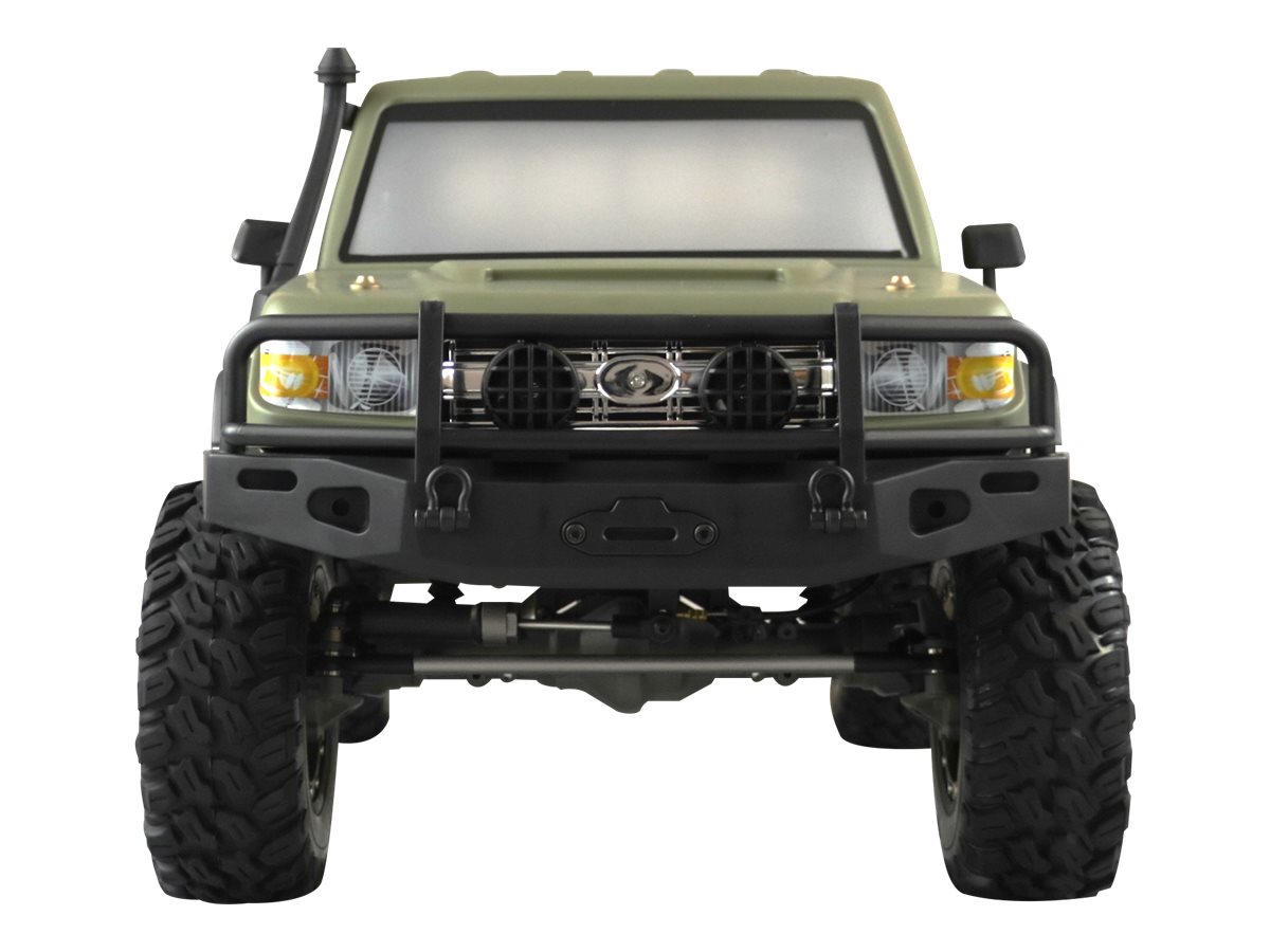 Dank des leistungsstarken Allradantriebs (4WD), eines durchdachten Chassis-Designs und einer realistischen Scale-Karosserie mit militärischem Charakter meistert dieser Crawler selbst schwierigstes Gelände souverän. Die große Bodenfreiheit, griffige Offroad-Reifen und ölgedämpfte Stoßdämpfer sorgen für extreme Geländegängigkeit. Ideal für erfahrene Fahrer, die Größe, Power und ein authentisches Offroad-Erlebnis suchen.