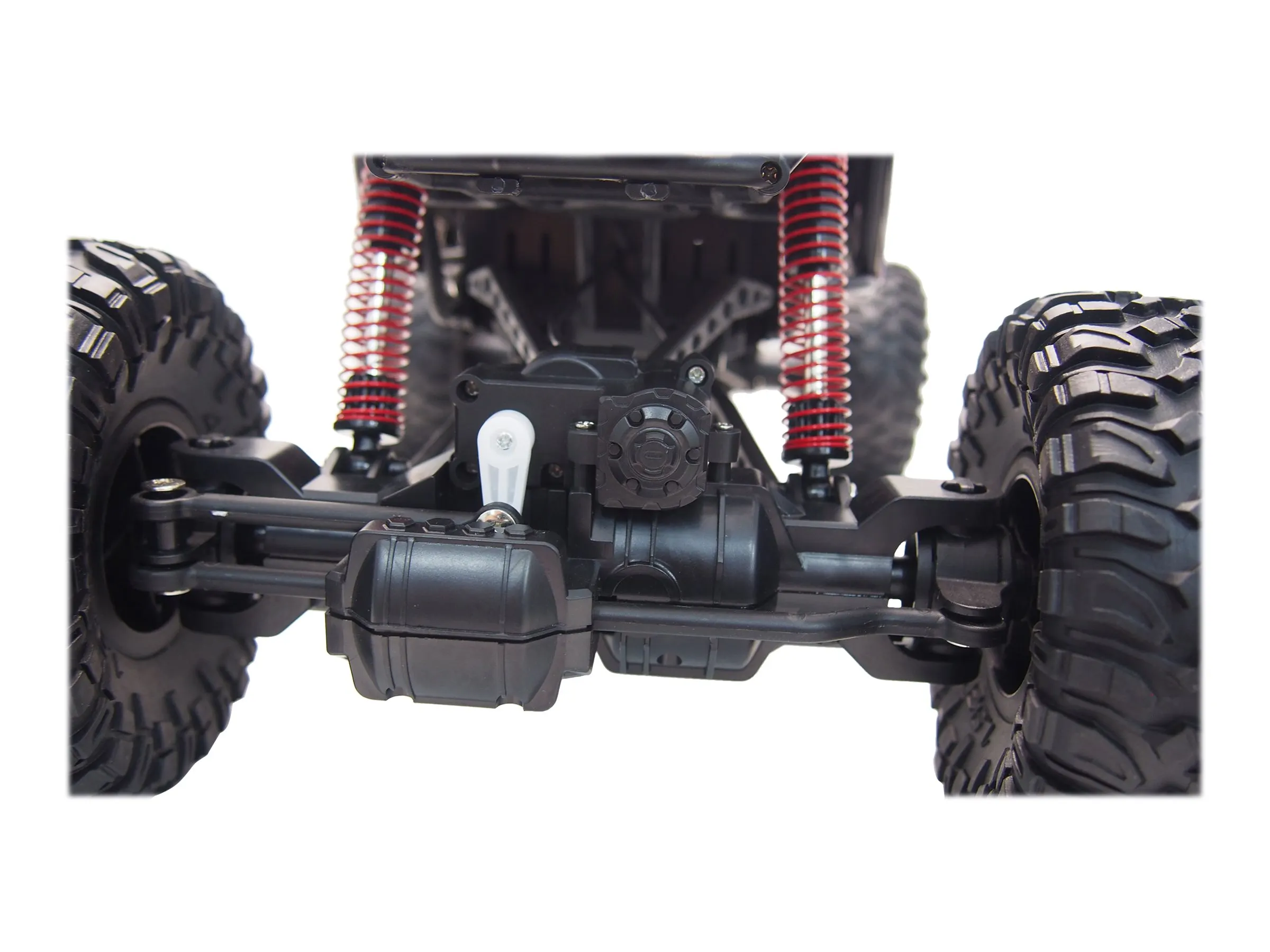 Dank der hochwertigen Federung meistert der Crazy Crawler Hindernisse spielend leicht und ist somit ideal für den Einsatz im Gelände. Die 2,4 GHz Funkfernsteuerung ermöglicht eine störungsfreie Kontrolle mit hoher Reichweite. Mit seinem auffälligen roten Design und der robusten Bauweise eignet sich dieses RC-Modell perfekt für Einsteiger und erfahrene RC-Fans ab 14 Jahren.