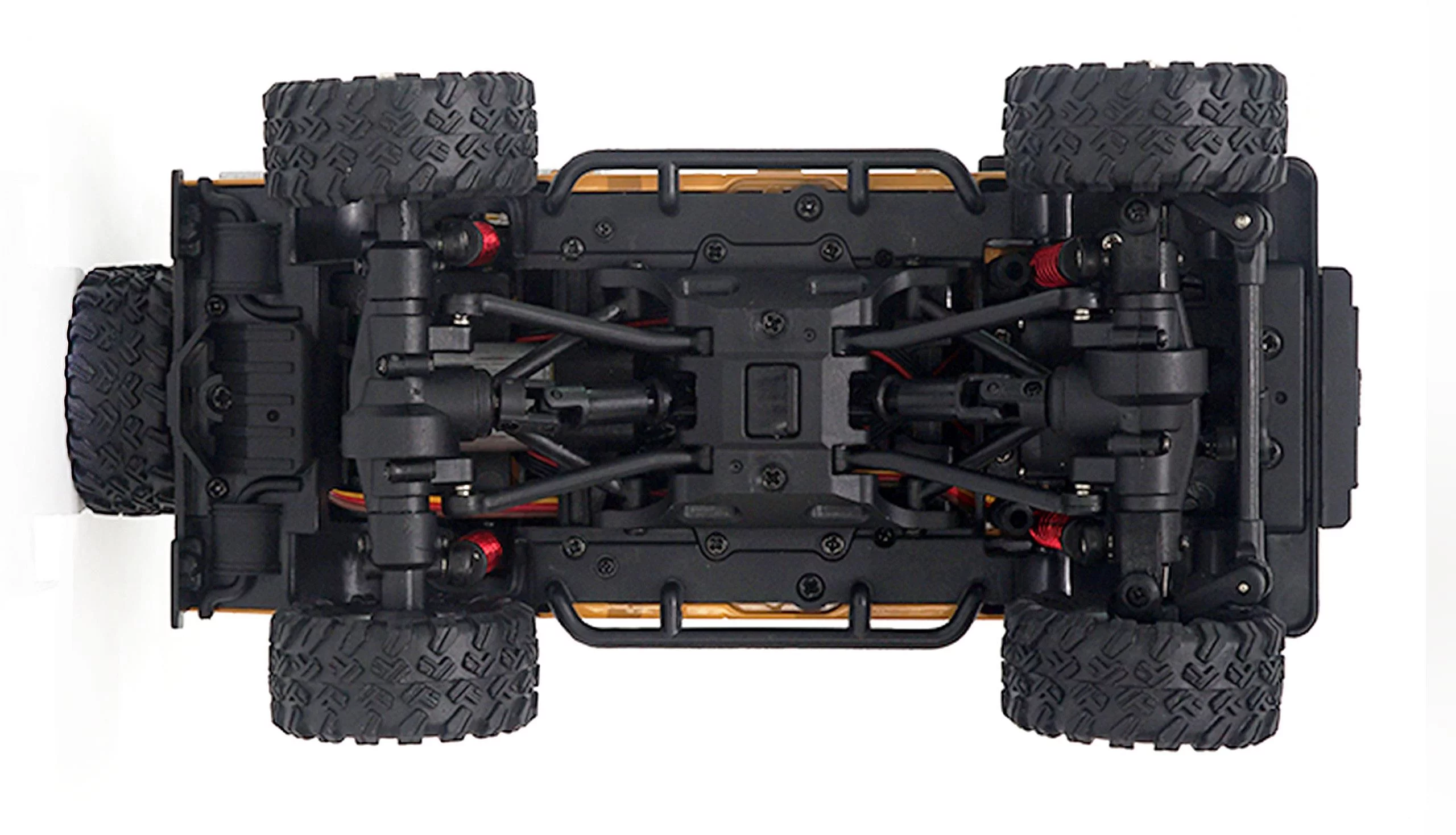 Das Modell im Maßstab 1:28 überzeugt durch eine authentische Karosserie, die sich an klassischen Offroad-Legenden orientiert. Die weiche Federung sorgt für eine realistische Dämpfung, während die griffigen Gummireifen eine exzellente Traktion auf unterschiedlichen Untergründen bieten.