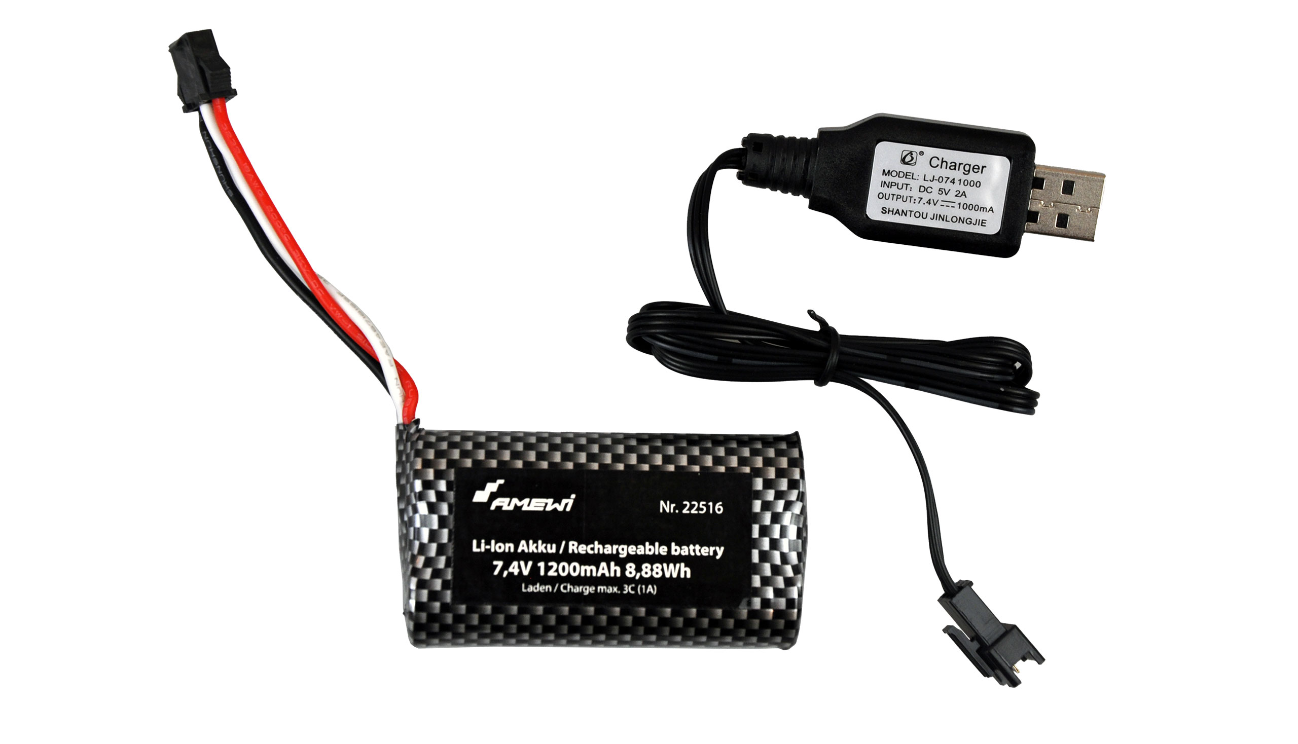 - Großer Li-Ion Akku 7,4V 1200MAh mit JST-BEC Anschluss für lange Fahrzeiten