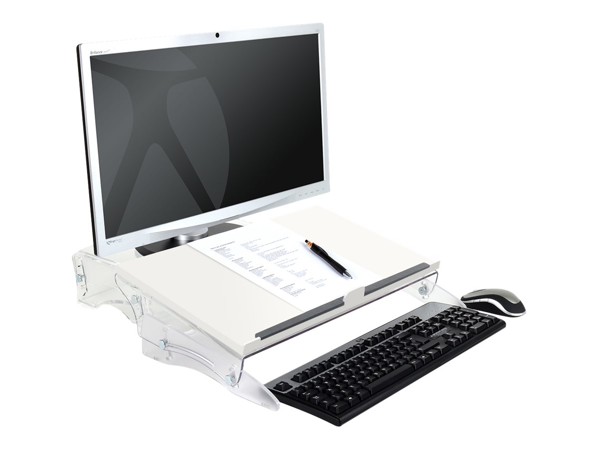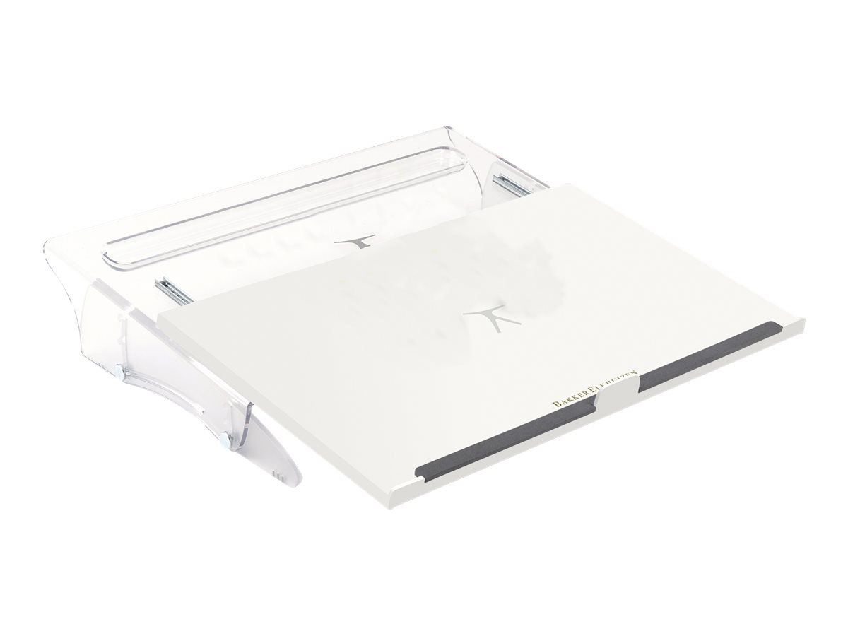 Dank der verschiebbaren, stabilen Schreibauflage kann der FlexDesk 630 blitzschnell zwischen Lese- und Schreibmodus umgeschaltet werden. Die kratzfeste Oberfläche aus glasklarem Acryl und die rutschfesten Gummifüße sorgen für eine sichere Nutzung und einen edlen Look. Die Plattform ist neigungsverstellbar, wodurch sie individuell an die Bedürfnisse des Nutzers angepasst werden kann.