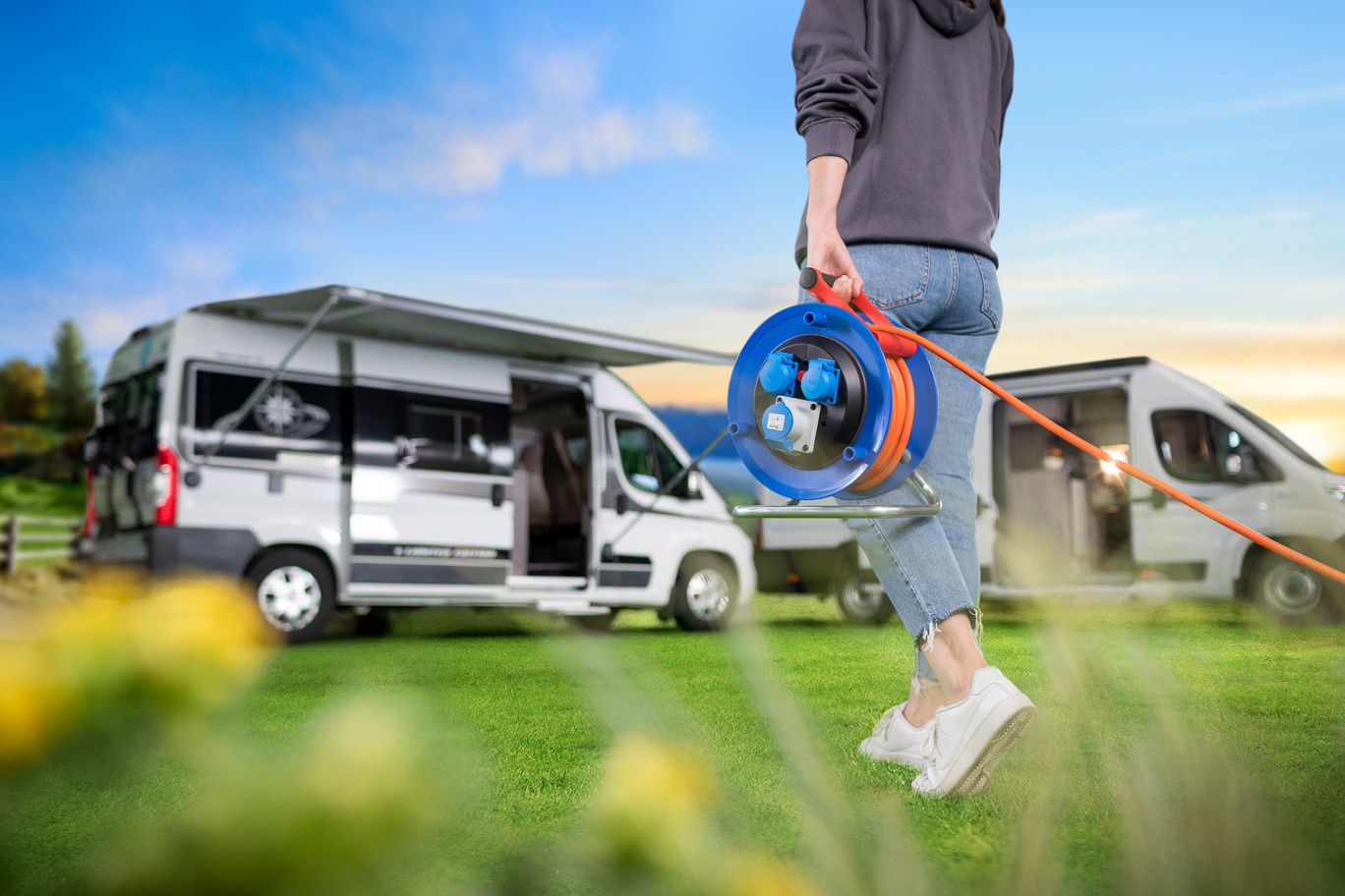 Die Kabelummantelung aus Spezialkunststoff ist besonders strapazierfähig, und der Tragegriff sowie die Kabelführung sorgen für eine komfortable Handhabung. Ideal für den Einsatz beim Camping oder auf Baustellen.
