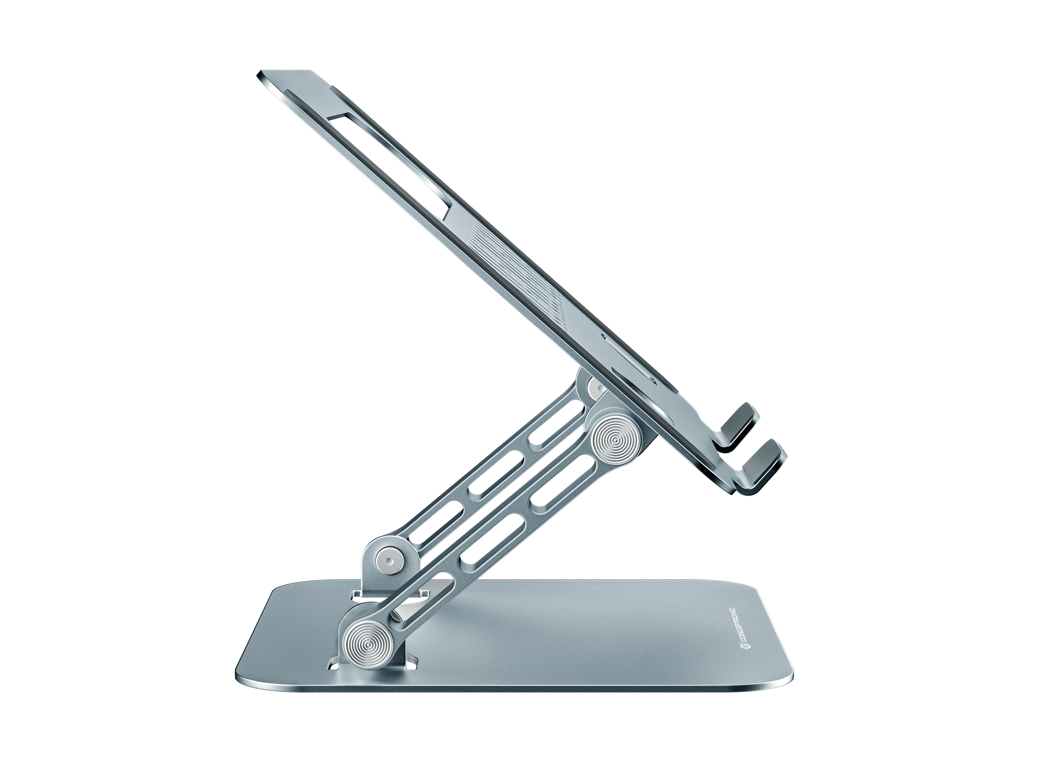 Die offene Bauweise aus Aluminium sorgt für eine optimale Luftzirkulation unter dem Gerät, wodurch die Wärmeabfuhr verbessert und eine Überhitzung reduziert werden kann. Gleichzeitig gewährleistet die stabile Konstruktion einen sicheren Stand, wodurch Notebooks zuverlässig fixiert werden können.
