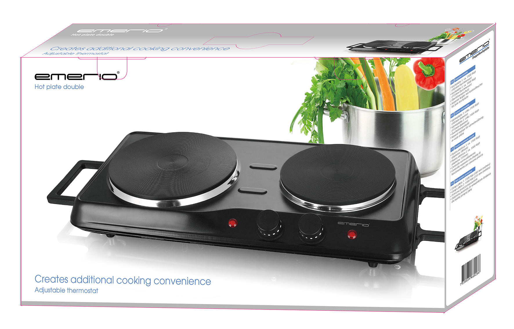 Die Temperatur der Kochplatten wird stetig durch die Sicherungsfunktion überwacht. Die Kochplatte können einzeln oder gleichzeitig benutzt werden. Die Leistung der großen Platte liegt bei 1500 Watt und bei der kleinen Platte bei 1000 Watt. Mit der Doppelkochplatte von Emerio haben Sie immer alles dabei ihre Speisen zuzubereiten.