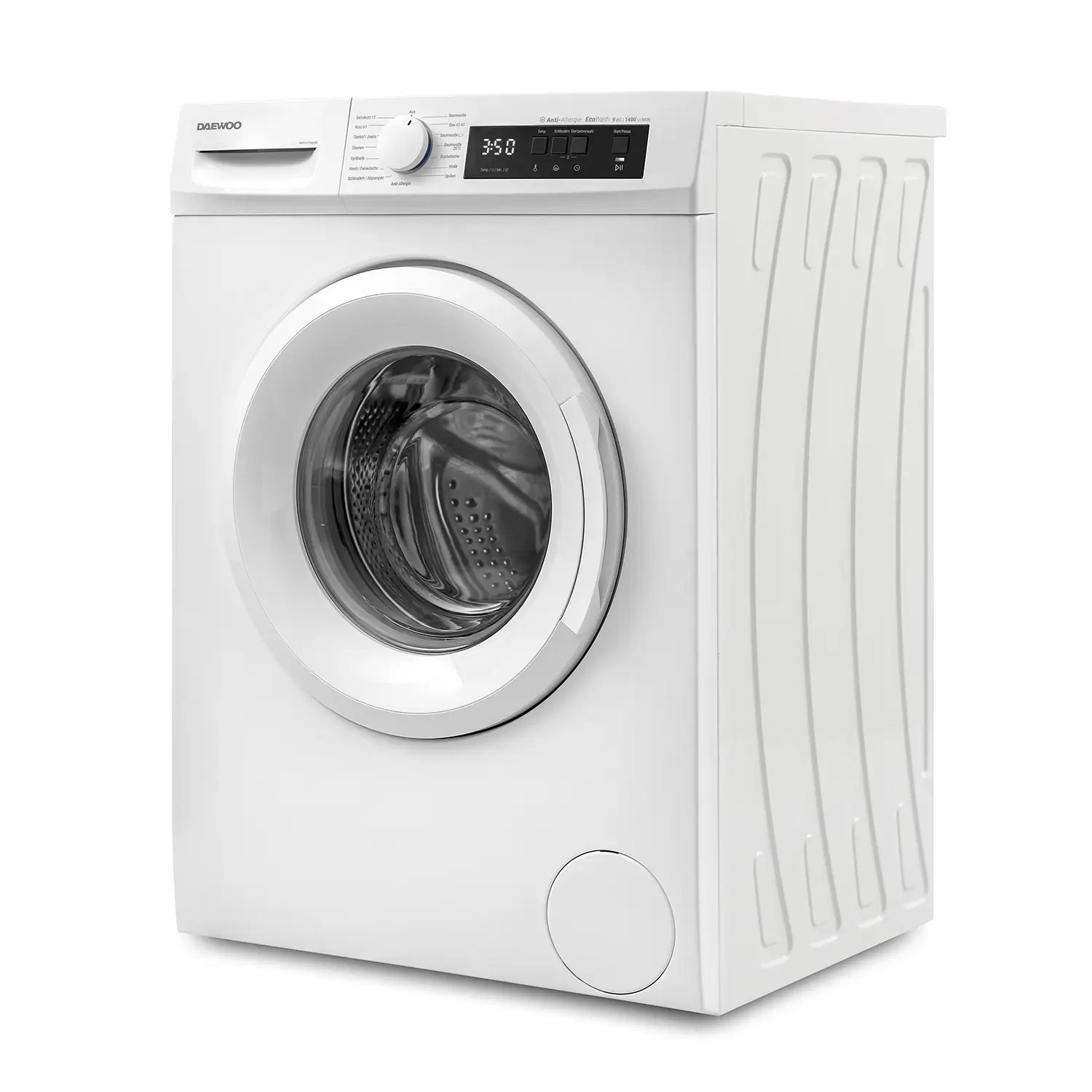 Die Daewoo WM914T1WA0DE ist eine moderne Frontlader-Waschmaschine für große Haushalte mit hohem Wäscheaufkommen. Mit einer Füllmenge von 9 kg und einer Schleuderdrehzahl von bis zu 1.400 U/Min bietet sie