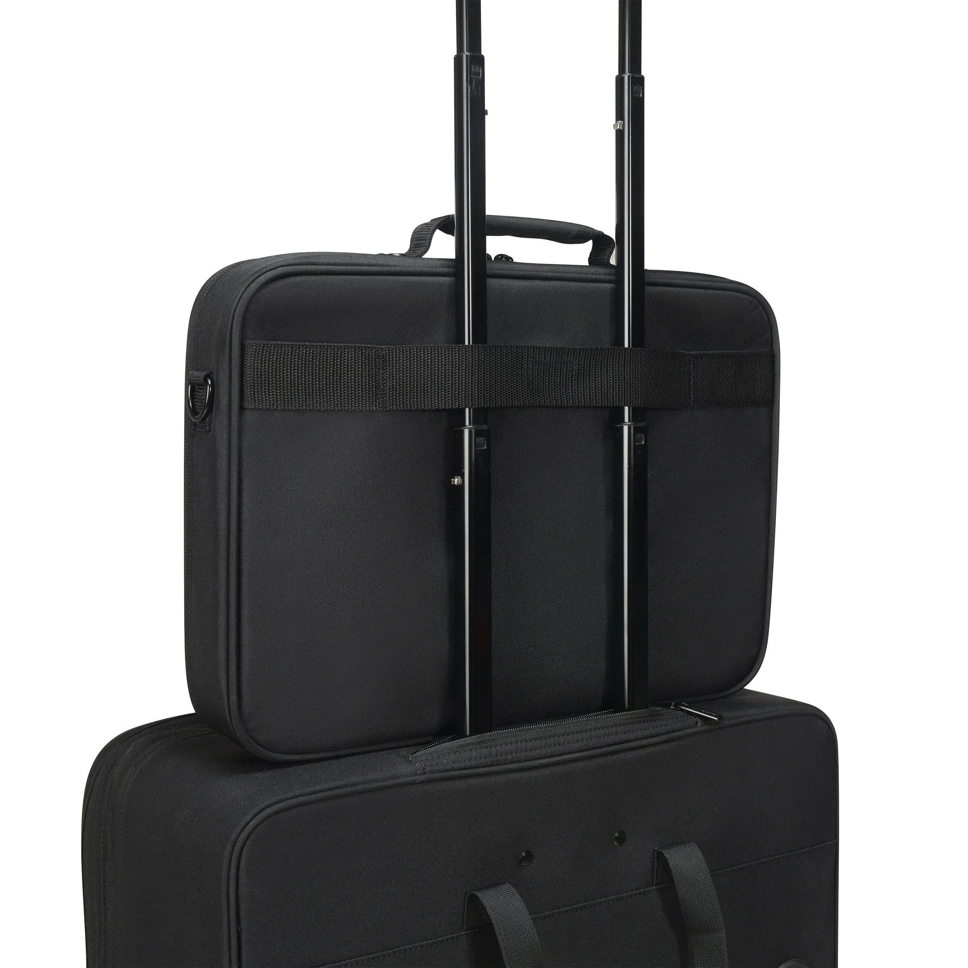 Das praktische Clamshell-Design ermöglicht ein vollständiges Öffnen der Tasche, wodurch ein schneller Zugriff auf das Gerät und Zubehör erleichtert wird. Zusätzliche Fächer bieten Platz für Dokumente und Arbeitsutensilien, wodurch alles Wichtige übersichtlich verstaut werden kann.