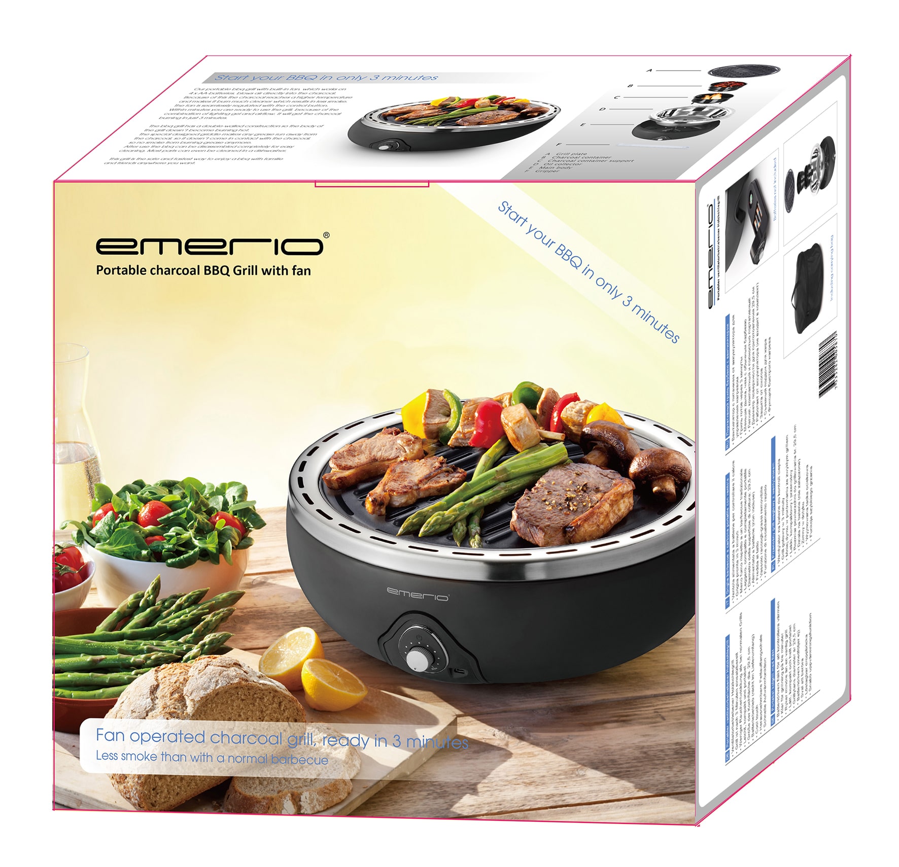 Emerio BBQ Grill Portable, Ventilatorbetr.Holzkohle, Tasche