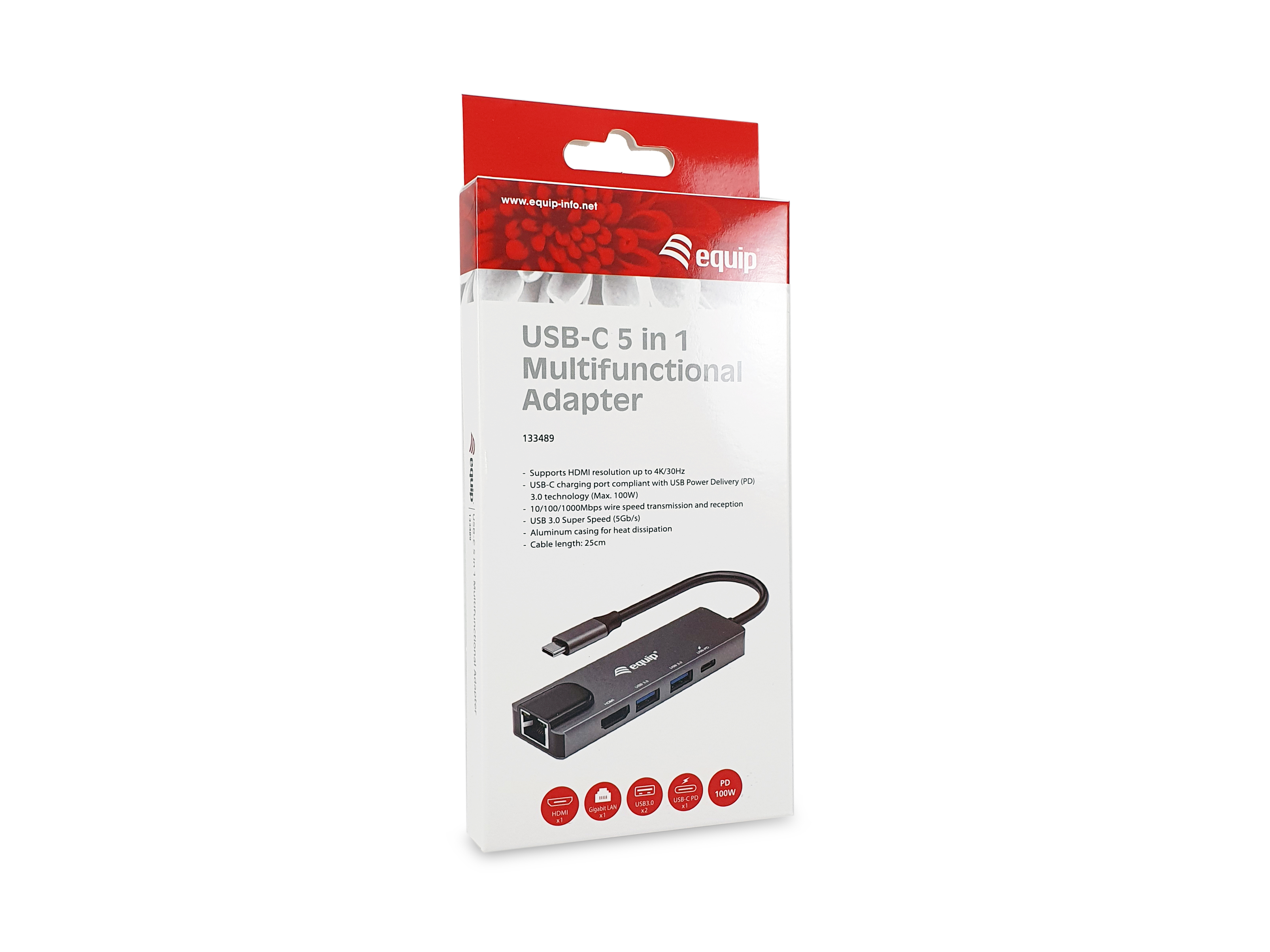 Das Equip USB-C Dock ist eine kompakte und leistungsstarke Lösung, die vielseitige Anschlussmöglichkeiten für moderne Laptops und Tablets bietet. Mit einer Kabellänge von 0,25 m vereint das Dock mehrere Funktionen: HDMI, Gigabit-LAN, zwei USB 3.0-Anschlüsse sowie Unterstützung für Power Delivery (PD) bis zu 100 W. Es ermöglicht Ihnen, Ihren Arbeitsplatz einfach und effizient zu erweitern.