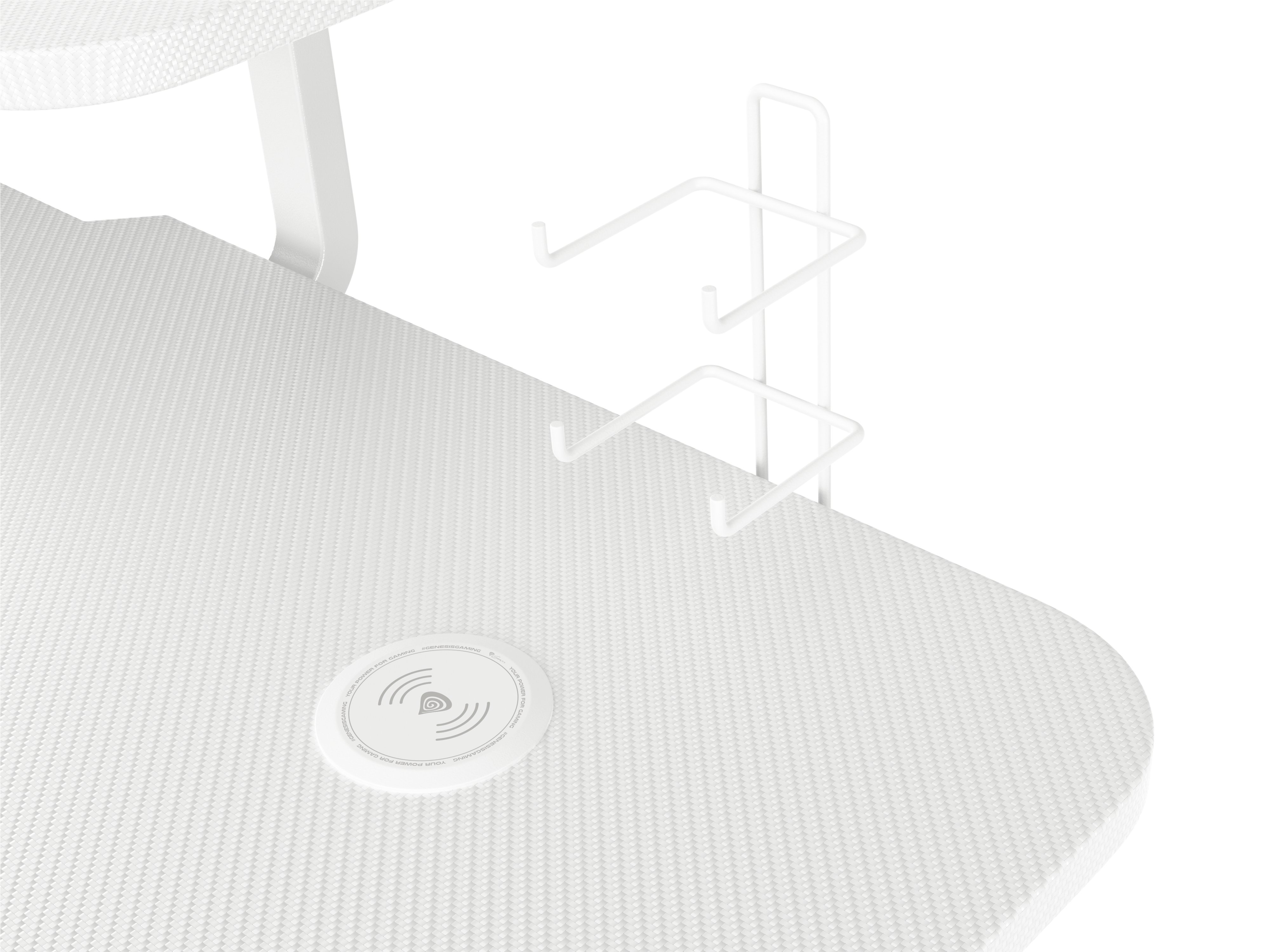 Jedes Element des Tisches ist in Weiß gehalten. Das Carbon-Finish der