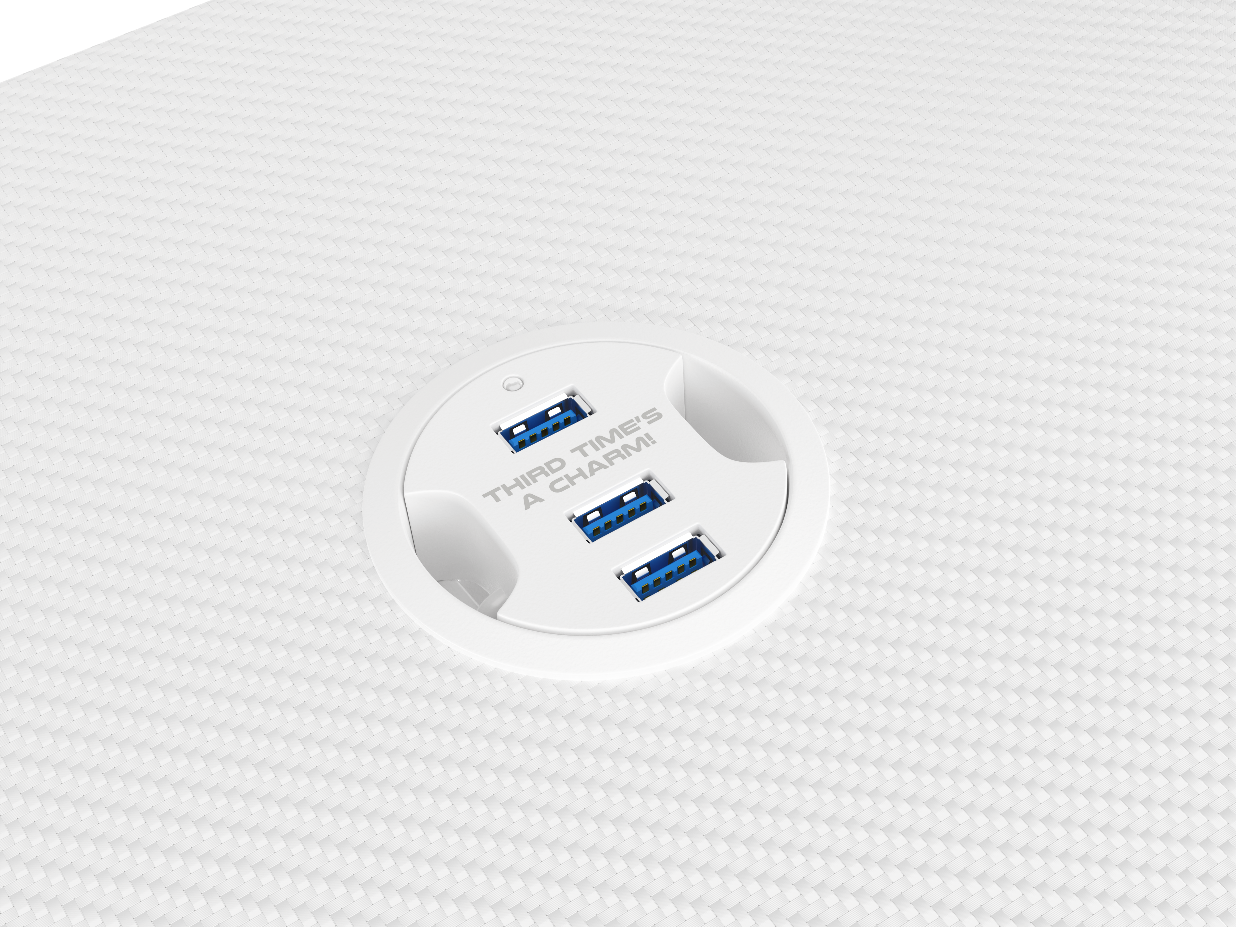 Der Tisch ist mit einem HUB mit drei USB 3.0-Anschlüssen und Kabelfächern
