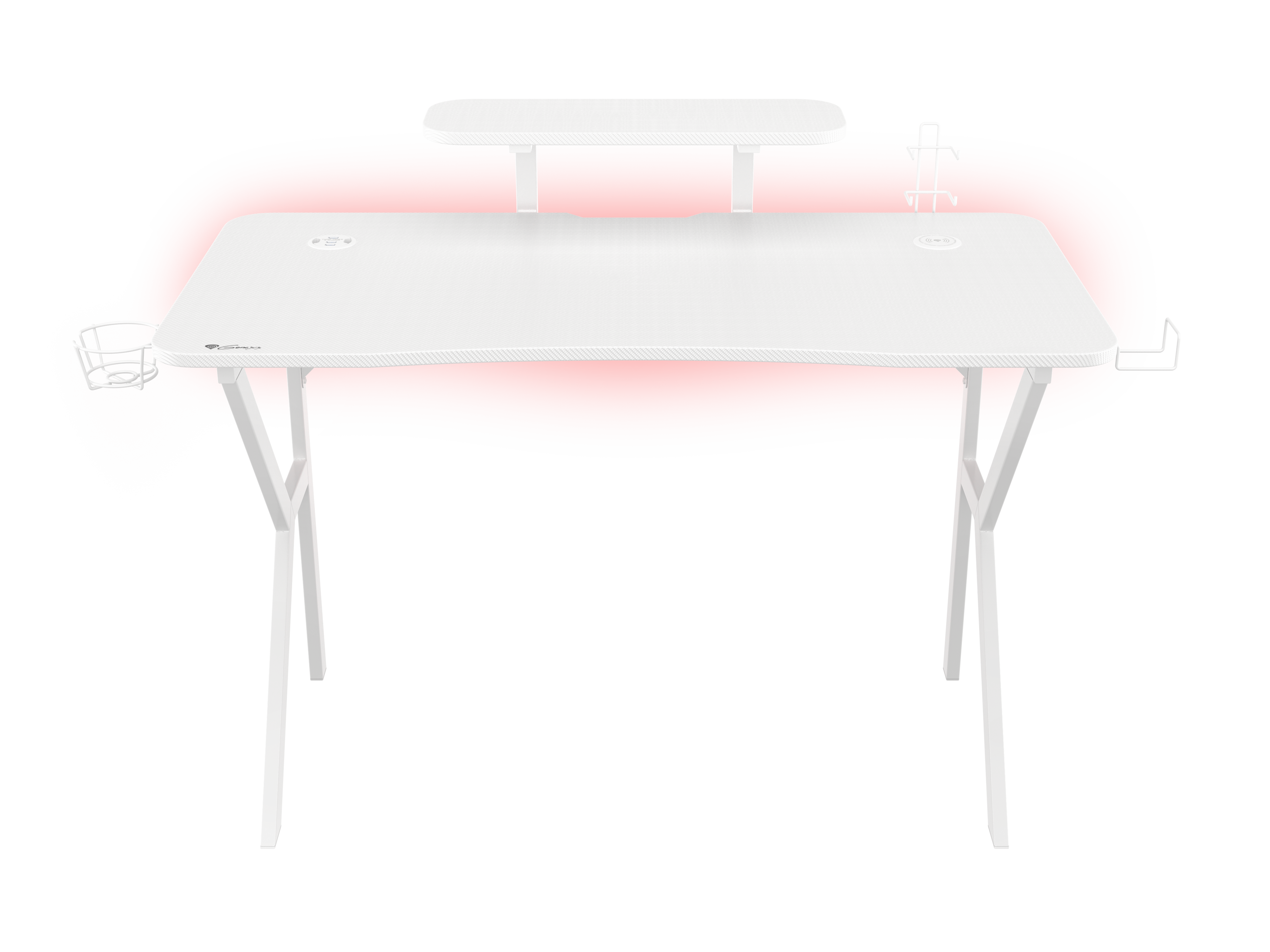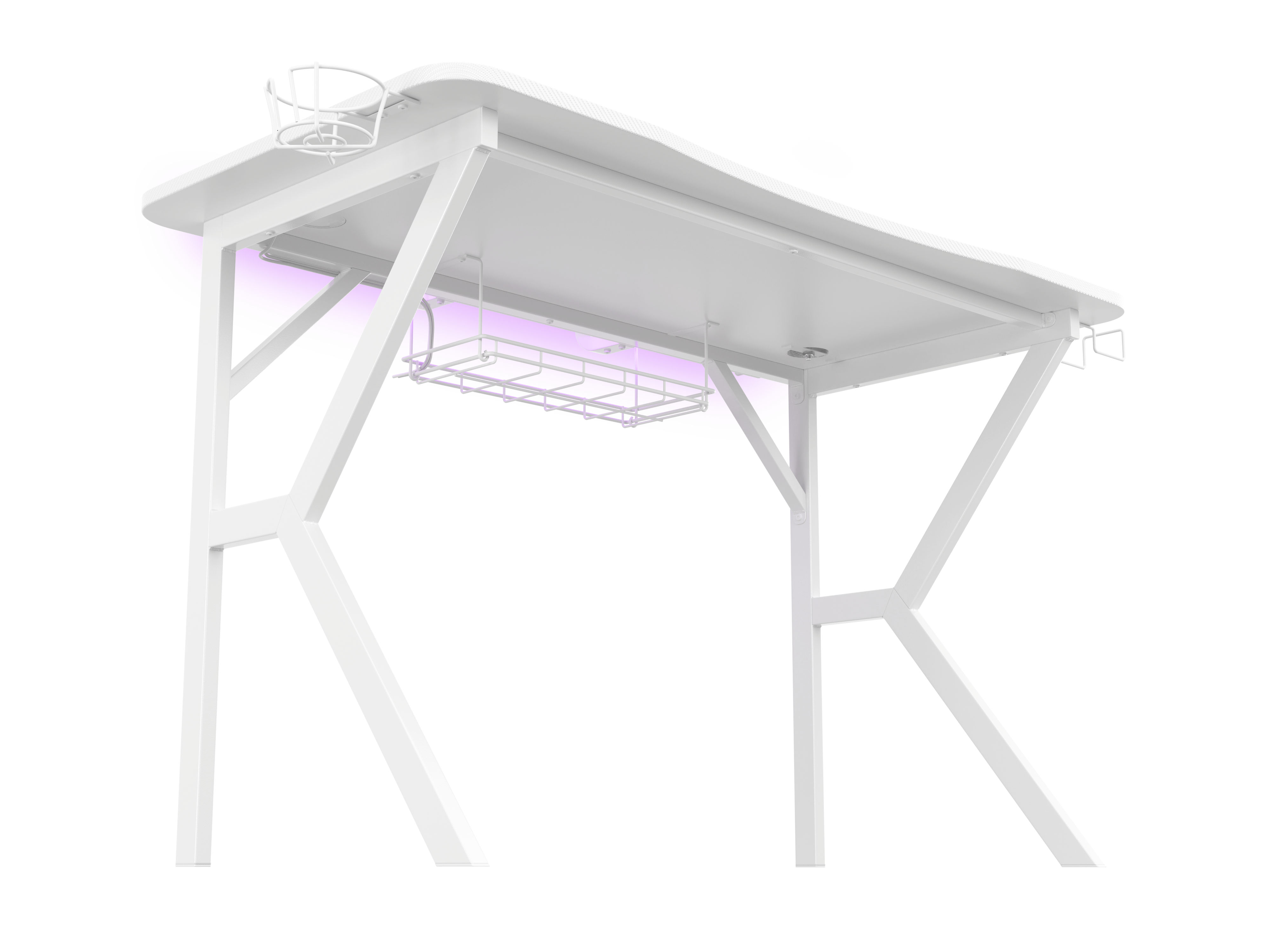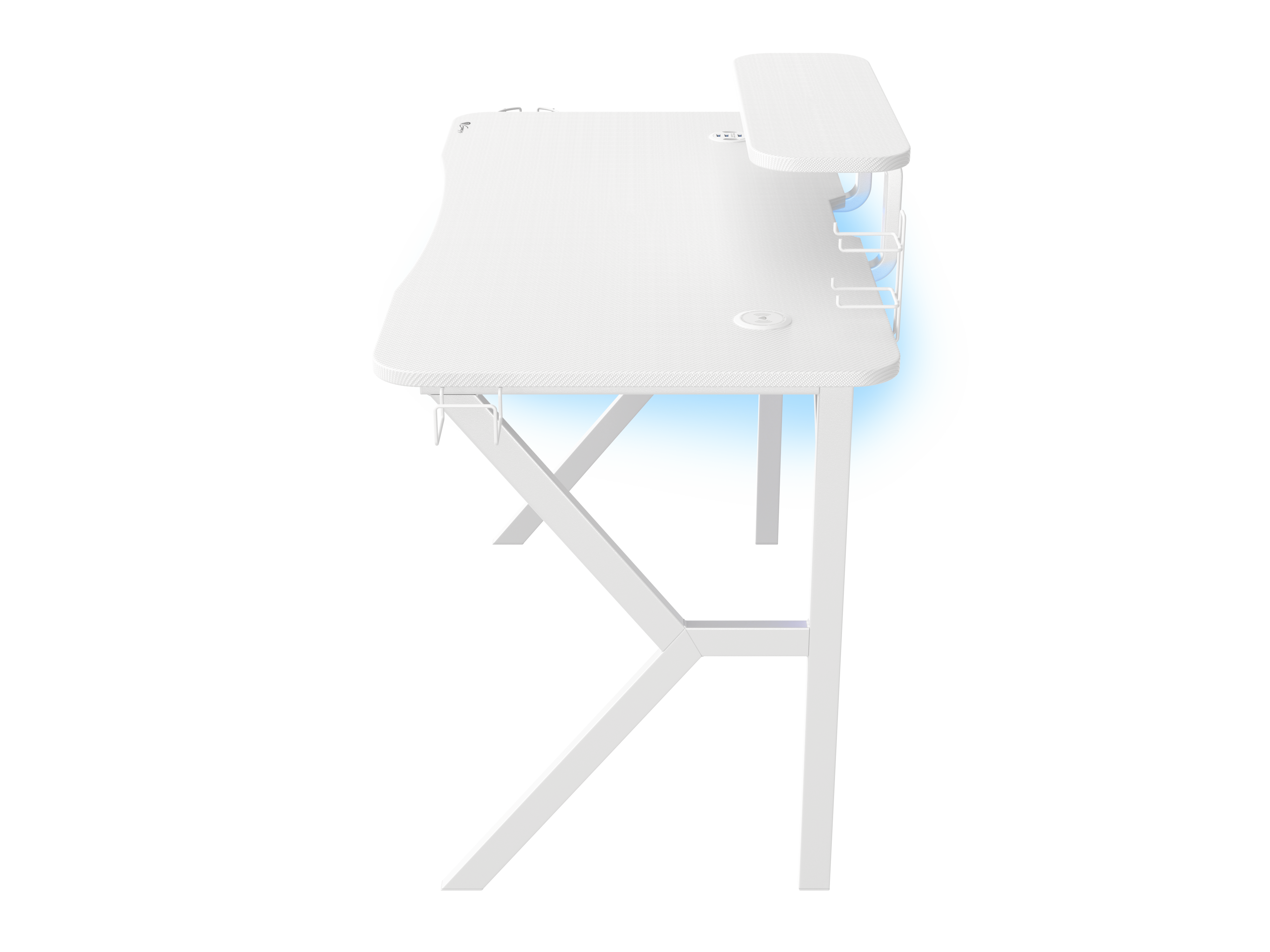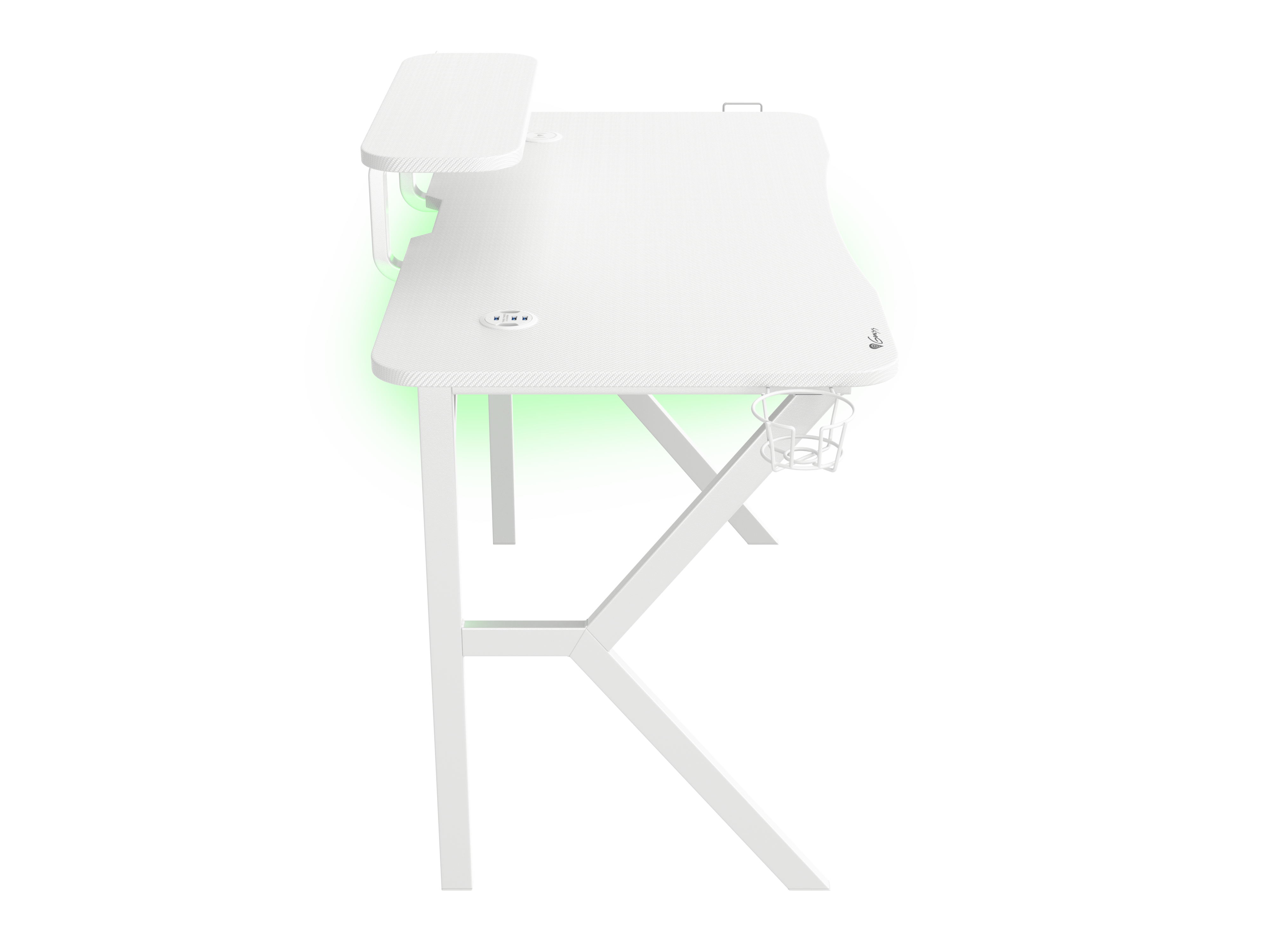 - Getränkehalter und Headset-Haken an beiden Seiten des Schreibtischs für
