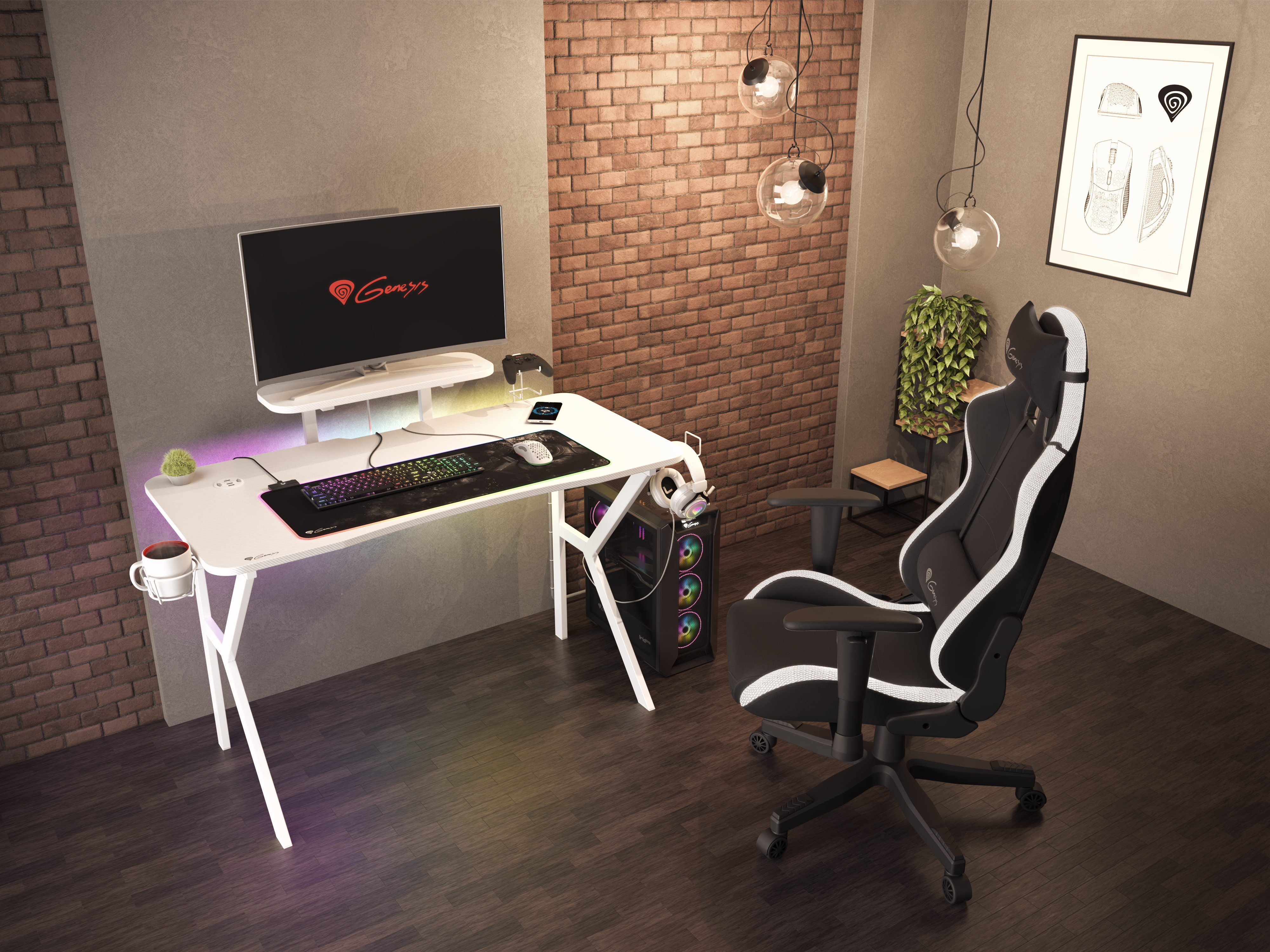 Genesis Gaming Tisch HOLM 320 RGB weiß (120cm x 75cm)