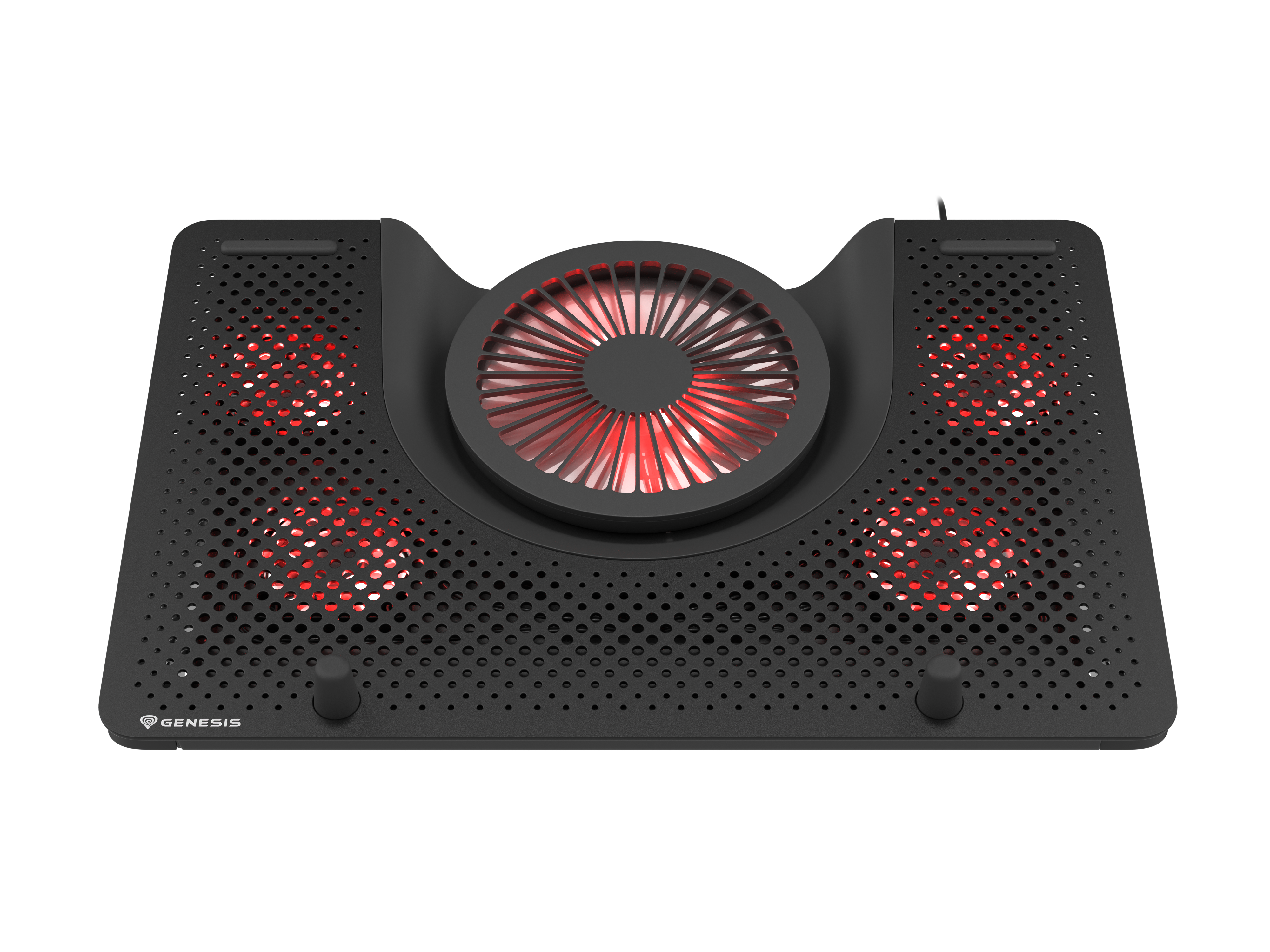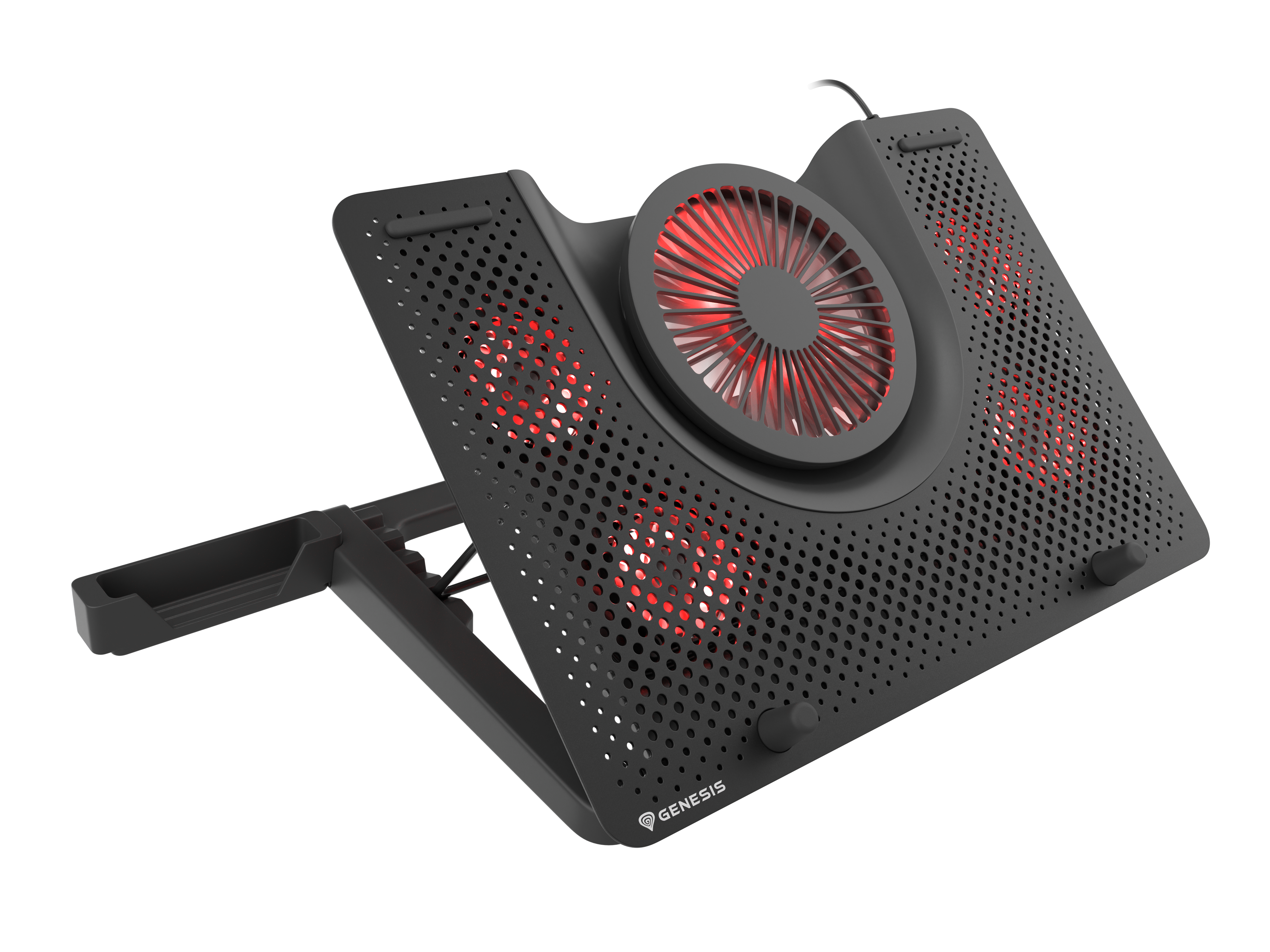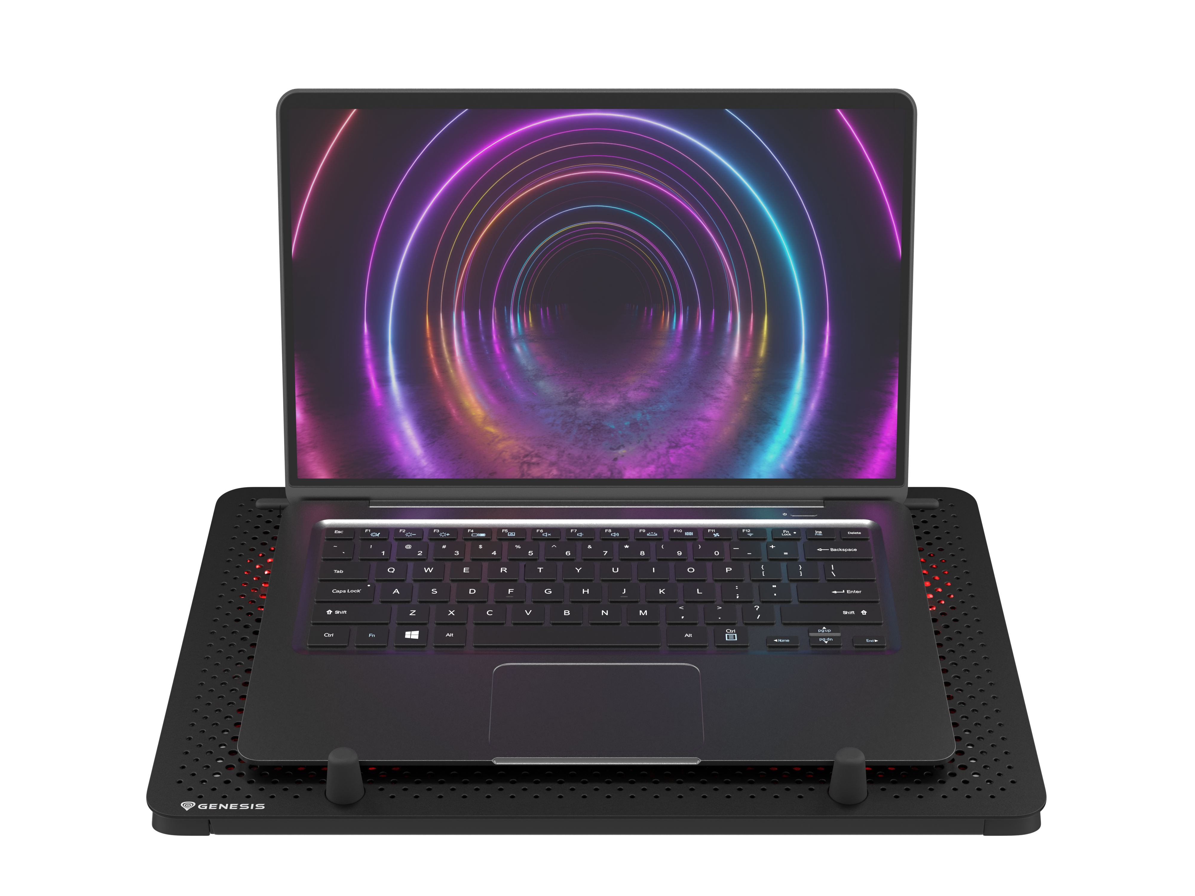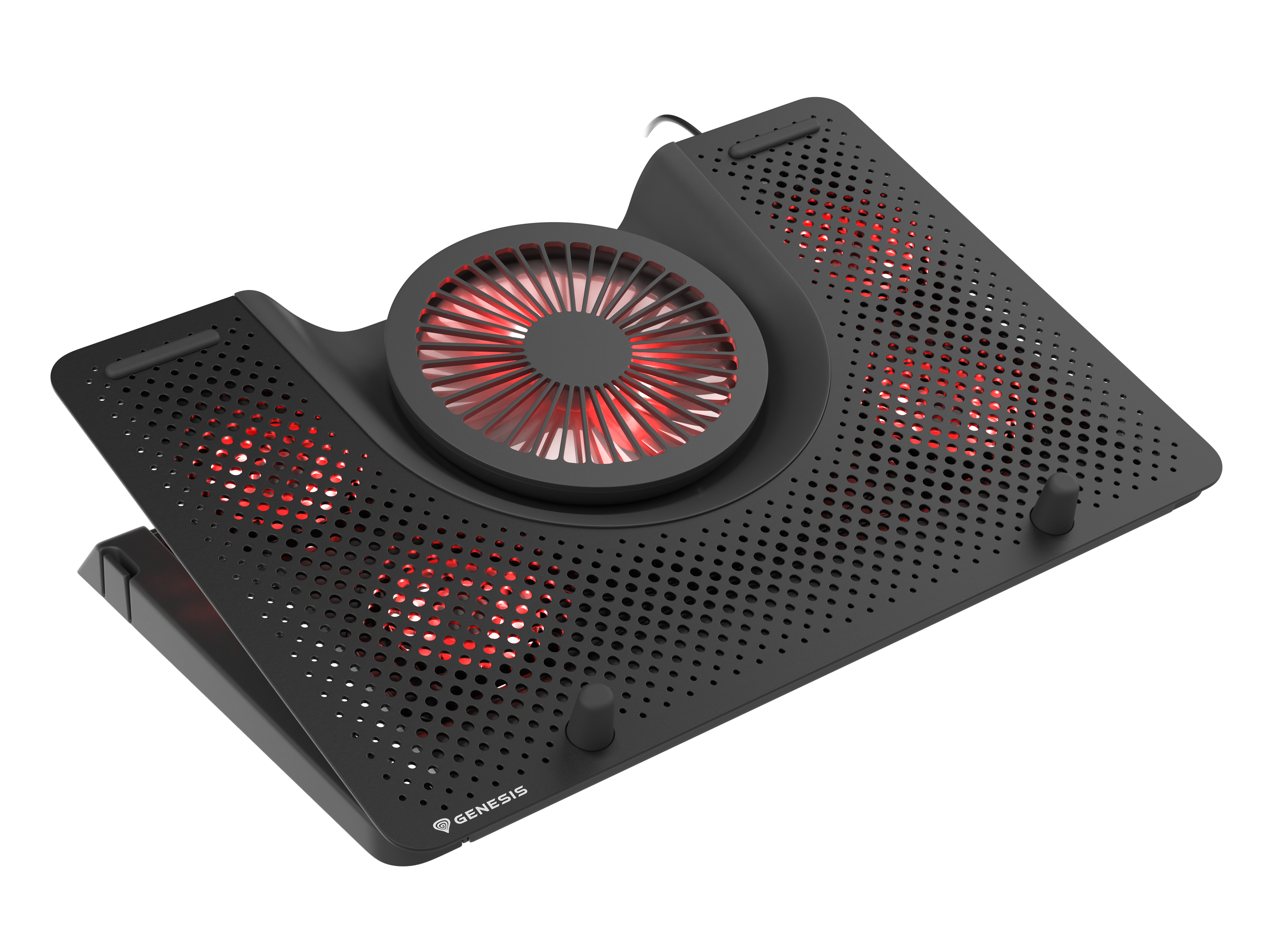 Bei langen abendlichen Gaming-Sessions überhitzt dein Laptop und hält dich davon ab, weiterzuspielen? Der Genesis Oxid 550 Kühlständer kühlt nicht nur die Komponenten deines Computers, sondern überrascht dich auch mit seinem stilvollen Design und der roten Beleuchtung,