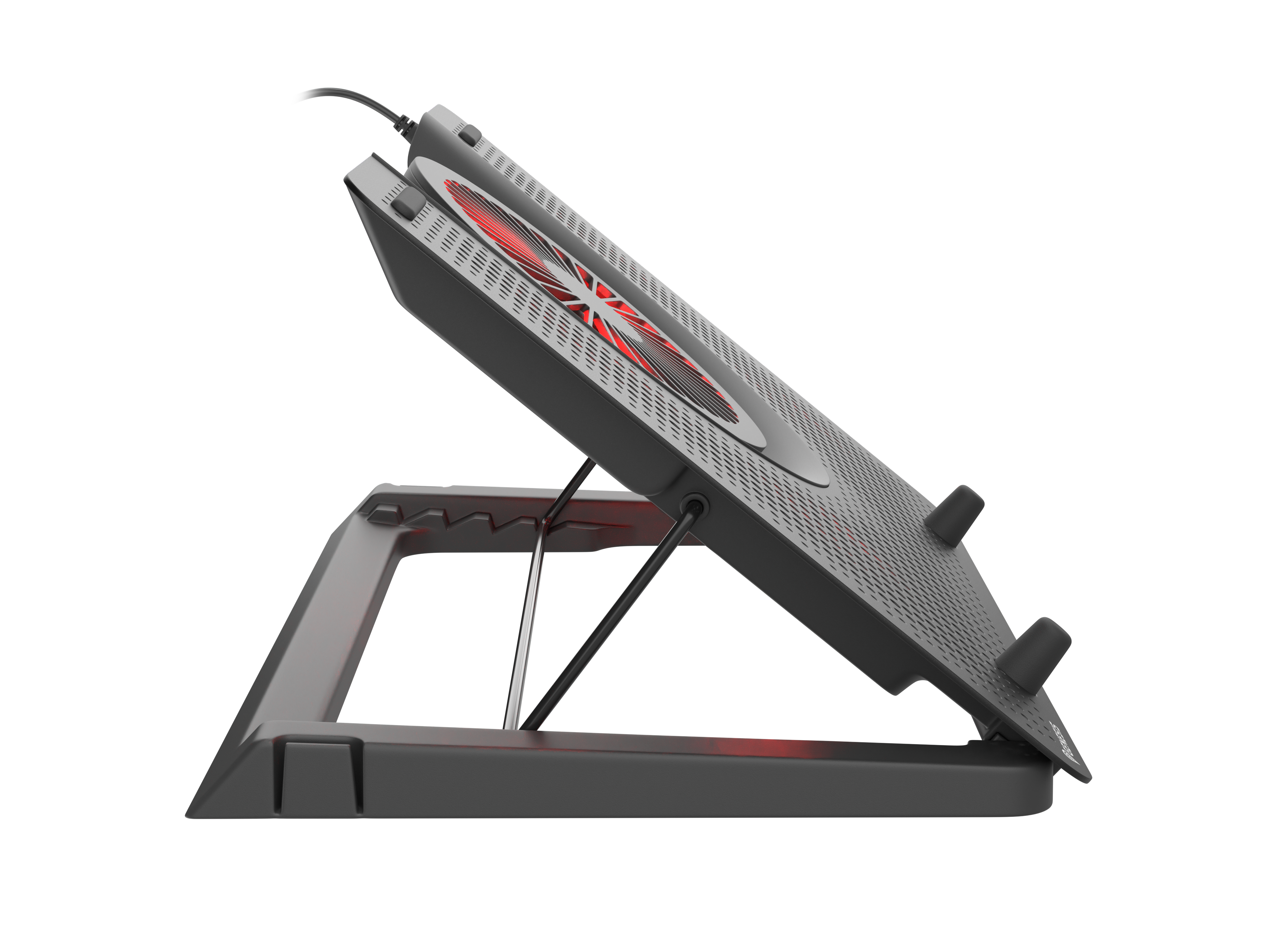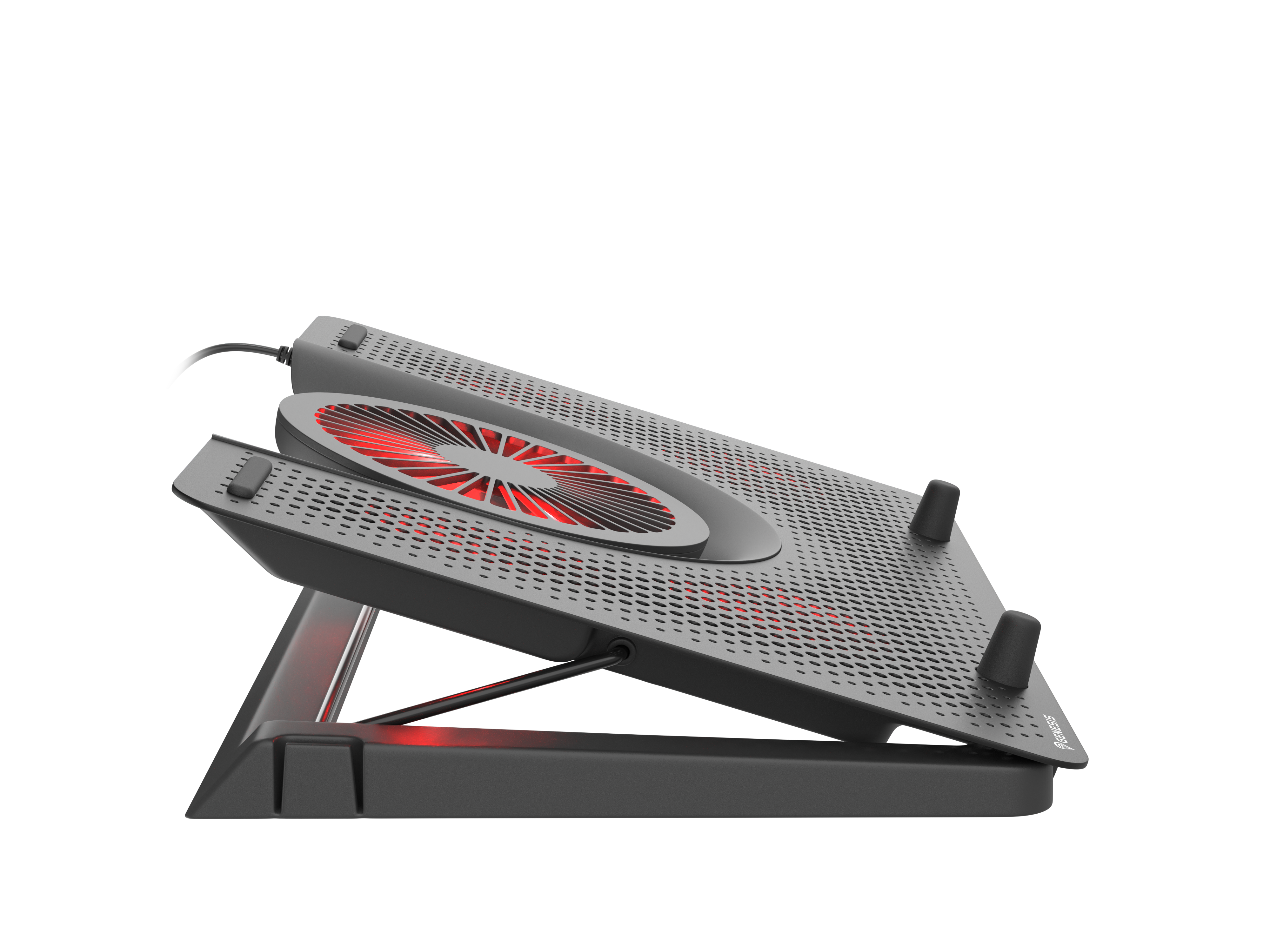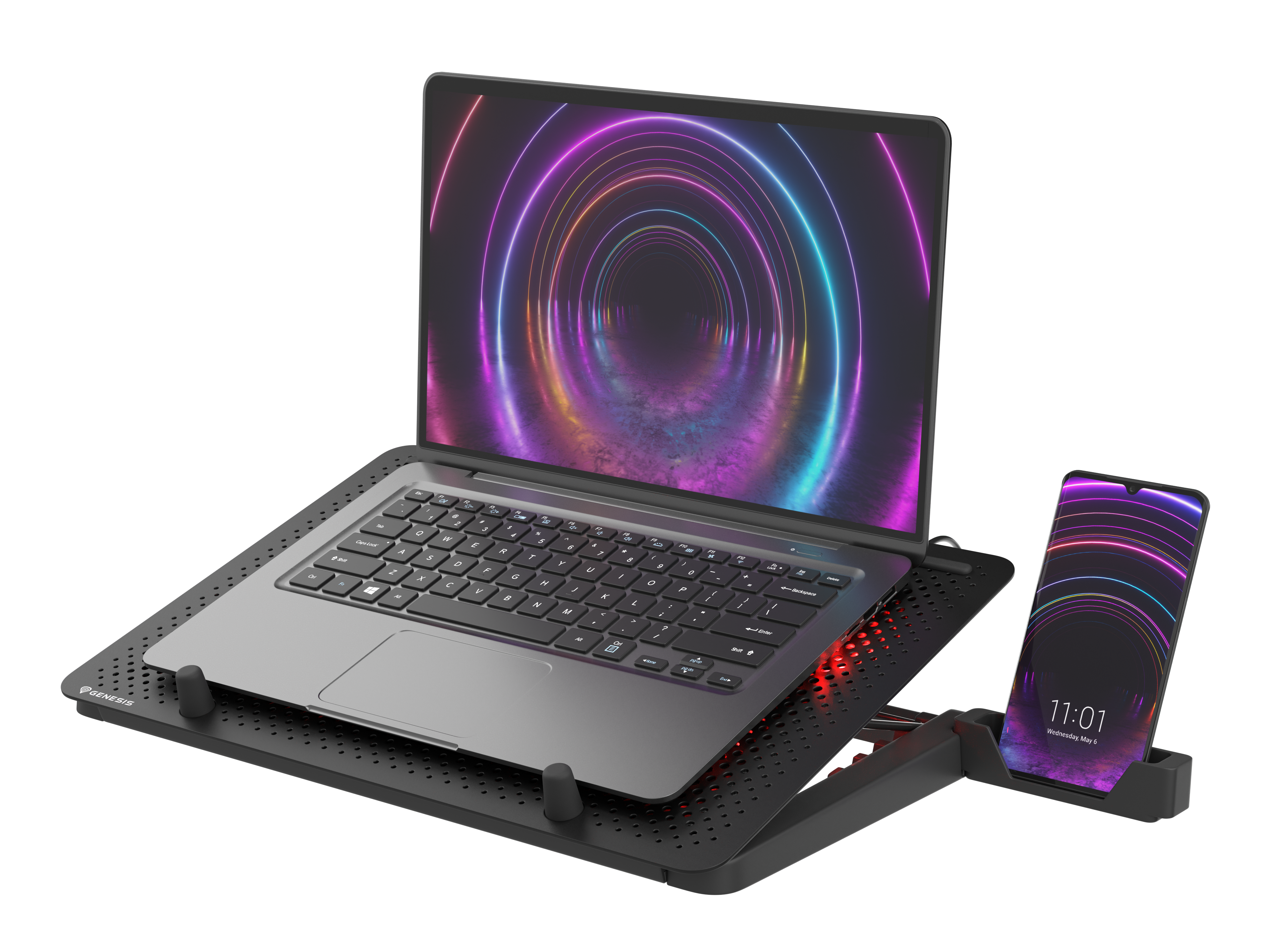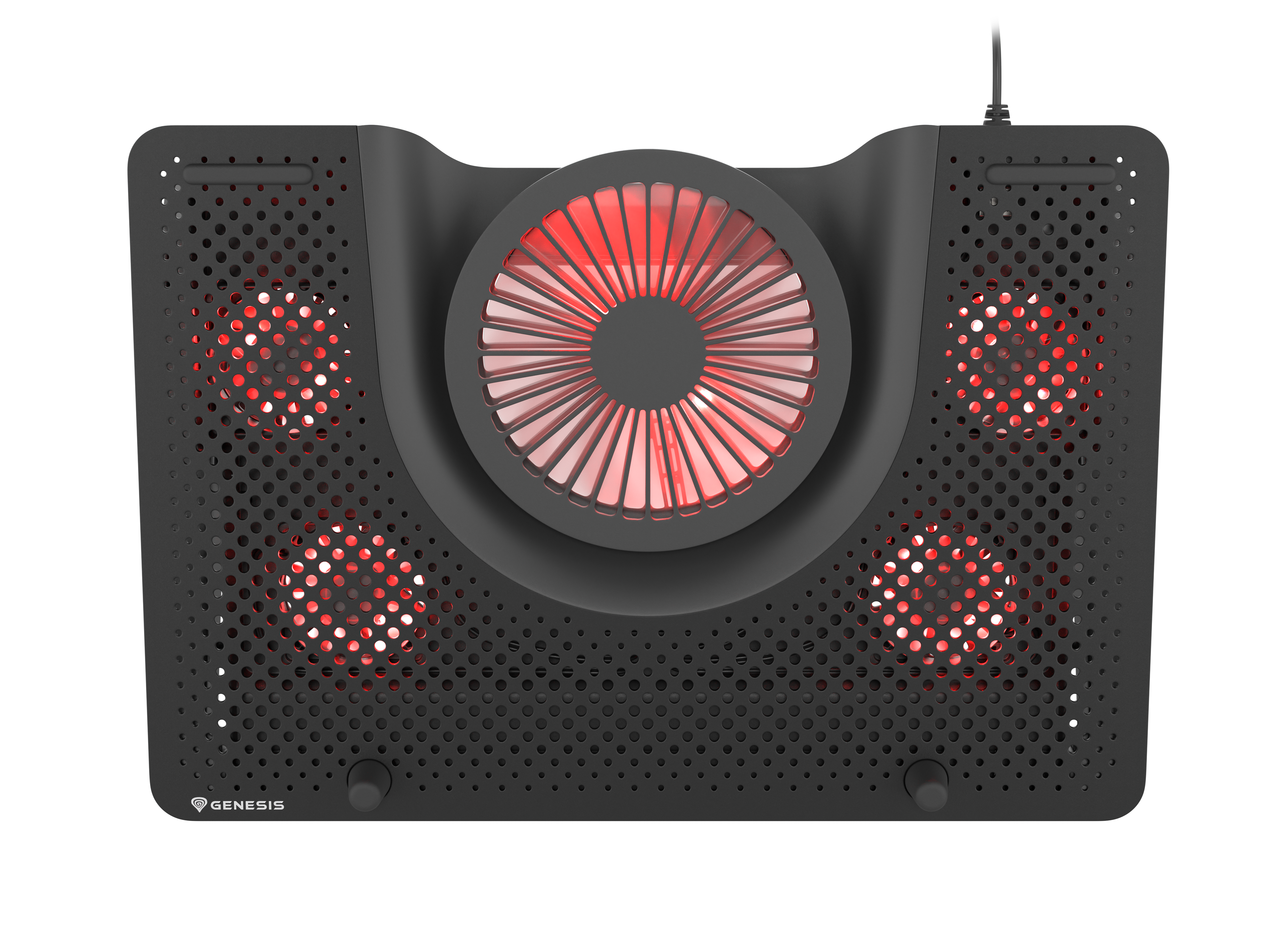 Bei langen abendlichen Gaming-Sessions überhitzt dein Laptop und hält dich davon ab, weiterzuspielen? Der Genesis Oxid 550 Kühlständer kühlt nicht nur die Komponenten deines Computers, sondern überrascht dich auch mit seinem stilvollen Design und der roten Beleuchtung,