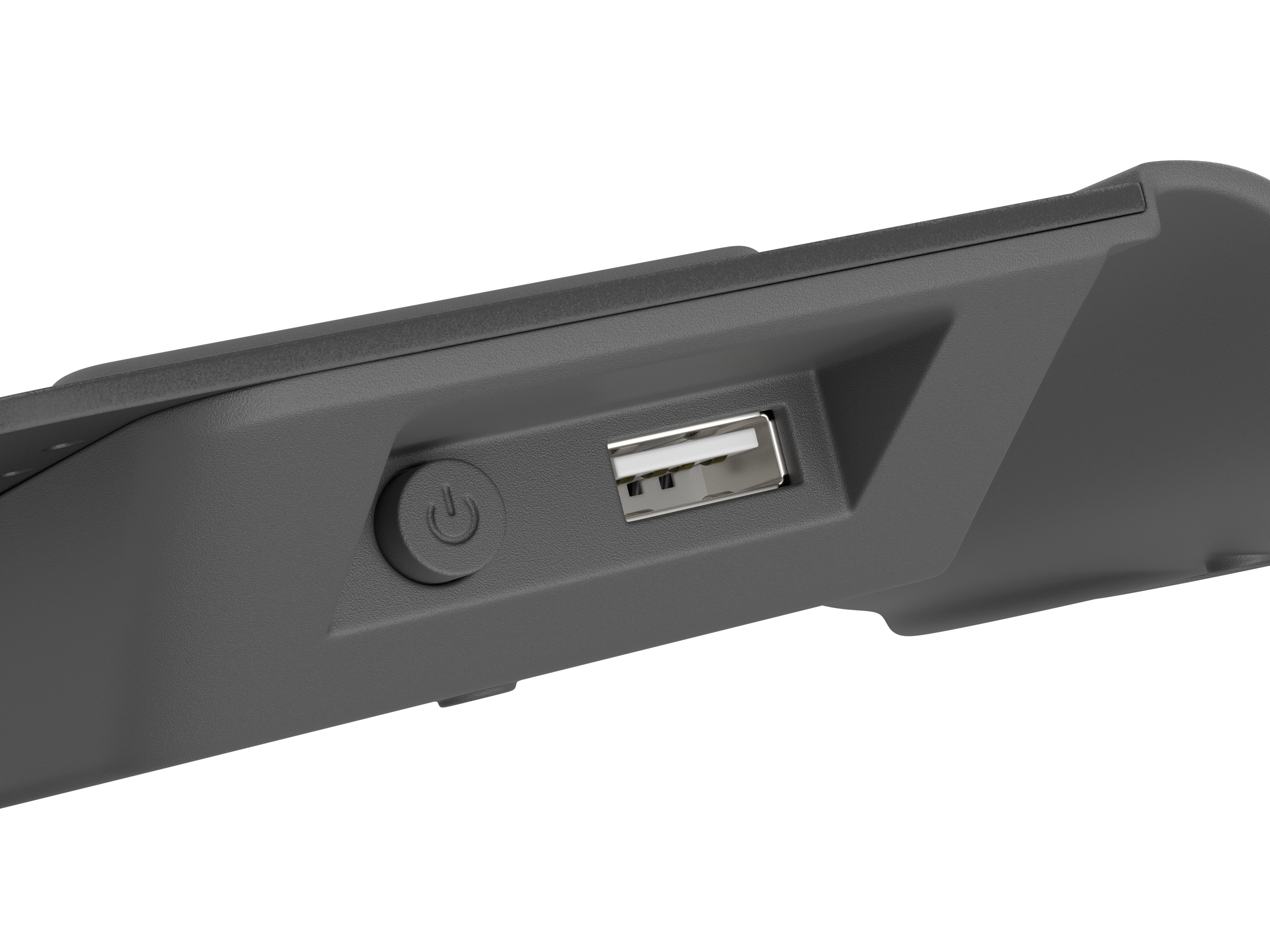 - Das Pad wird über einen der beiden eingebauten USB-A 2.0-Anschlüsse mit Strom